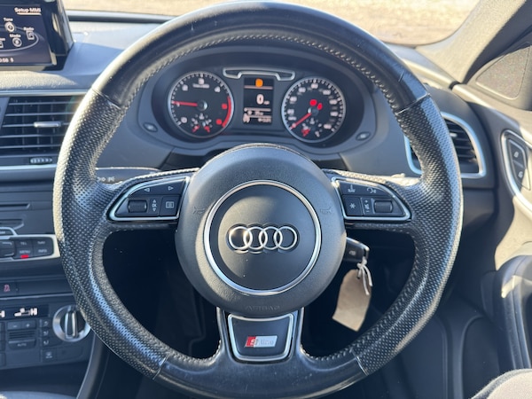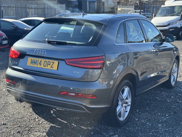 Stunning Audi q3 S-Line finished in grey metallic paintwork, 2 x remote central locking keys, just had a fresh full service, rear brake discs and pads, ready to drive away today, 3 months warranty with breakdown assistance, nationwide delivery, front and rear electric windows, electric side mirrors, multifunction steering wheel controls, smart dash drivers display, Audi MMI system, CDMP3RADIOAUXUSB Input, rear split folding seats, rear iso fix points, Too much specification to list please read below All our cars come with a minimum 6 Months MOT any car with less than 6 months left on it will go trough a new MOT on Point of sale. We make sure all our cars are serviced and valeted before or on point of sale. MINIMUM 3 Months Engine and Gearbox warranty on all our retail cars!!! All Usual dealer facilities part exchange considered, finance available, nationwide delivery available, onsite, All our cars Undergo a multi point inspection, We are based in Dewsbury West Yorkshire, We are in the industrial estate behind enterprise rent a car if you require any further help in finding us please contact a member of the team who will be more than happy to help. We can pick you up from the local train station if required. Please contact a member of the sales team for further information.