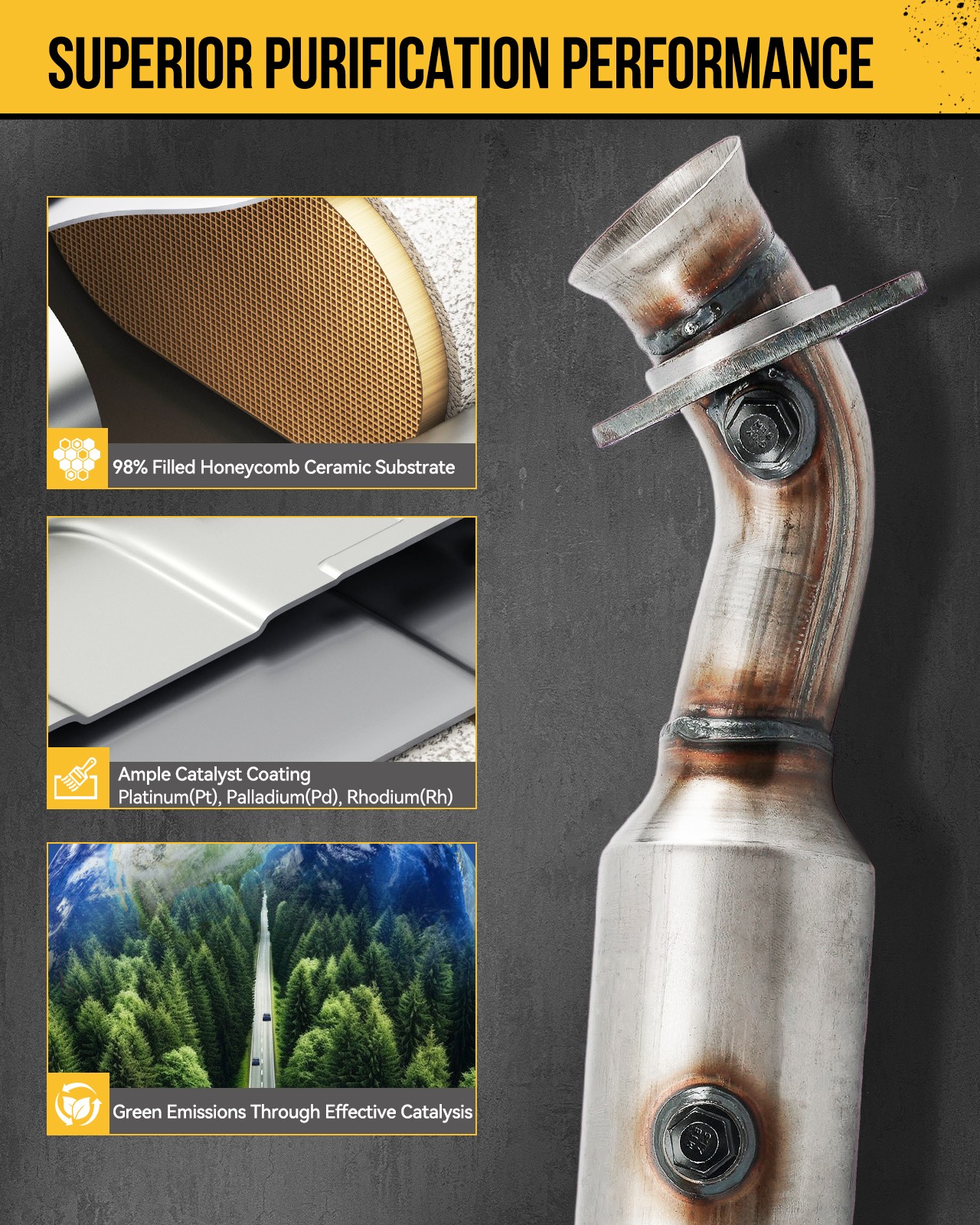 The internal catalyst coating uses a high content of metal catalysts, and its rough, porous surface design significantly improves the reaction efficiency.