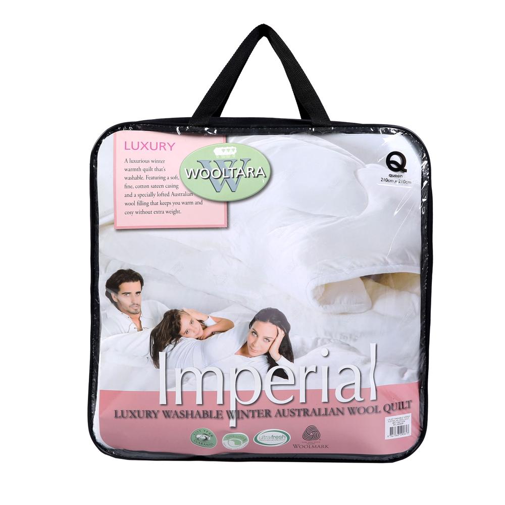 Description The 450gsm Wool Luxury Washable Winter Australian Wool Quilt is made with super-loft pure new Australian washable wool. It will keep you toasty and warm on those cold nights but without extra weight. The Ultra-Fresh treated and pearl printed pure soft cotton sateen cover provides durability and comfort as well as effective antibacterial protection.FEATURES450gsm pure new Australian washable wool filling.Contoured diamond quilting pattern for improved drape around you as you sleep.Winter weight.Soft high quality pearl printed pure cotton sateen cover.Ultra-Fresh treated for lasting freshness and effective control of dust mites.Can be machine washed.Natural fibre and healthy choice for comfort.Dimension: 140 210 cm.Size: Single Bed