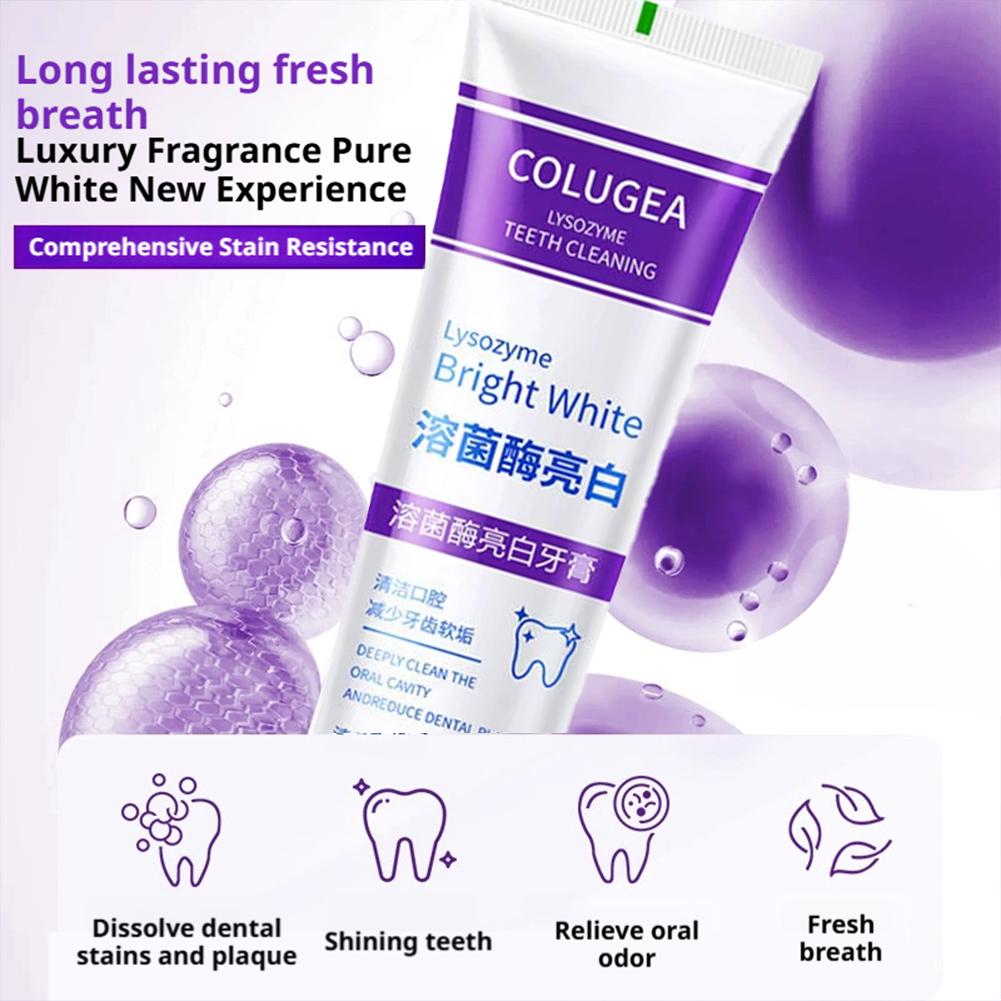 1. **Lysozyme Formula:** Experience a new level of oral hygiene with our advanced lysozyme toothpaste. This powerful formula deeply cleanses the mouth, effectively reducing plaque buildup, and with continued use, leaves your smile brighter and more radiant.