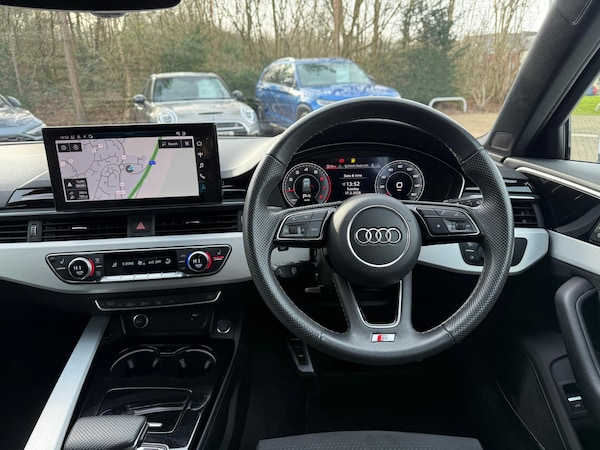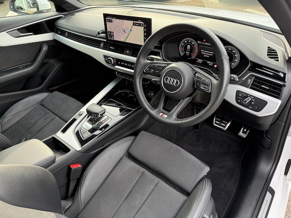 1 OWNER FROM NEW, TECHNOLOGY PACK, PARK ASSIST PLUS, MATRIX LED HEADLIGHTS, REAR VIEW CAMERA, HEADLIGHT WASHER SYSTEM, DIGITAL INSTRUMENT CLUSTER, POWER OPERATED TAILGATE, SATELLITE NAVIGATION, FRONT AND REAR PARKING SENSORS, DUAL ZONE CLIMATE CONTROL, BANG & OLUFSEN 3D SOUND SYSTEM, DAB / FM RADIO, APPLE CARPLAY, ANDROID AUTO, BLUETOOTH CONNECTIVITY, VOICE CONTROL, USB PORTS, WIRELESS PHONE CHARGER, INFOTAINMENT TOUCHSCREEN, LEATHER MULTI-FUNCTION STEERING WHEEL, FINISHED IN SOLID ARKONA WHITE, BLACK DINAMICA / PART LEATHER WITH S EMBOSSED UPHOLSTERY, HEATED FRONT SEATS, EXTENDED LED INTERIOR LIGHTING, SILVER ROOF RAILS, 19” SILVER 5-SPOKE ALLOY WHEELS, EXTENDED LED INTERIOR LIGHTING, AUTOMATIC LIGHTS, RAIN SENSING WIPERS, ELECTRONIC HANDBRAKE, 40:20:40 SPLIT REAR SEAT, PUSH BUTTON START, AUDI DRIVE SELECT, S TRONIC AUTOMATIC GEARBOX, 2 KEYS, EURO 6, ULEZ COMPLIANT All Audi Approved used cars are offered with a 12-month warranty and roadside assistance. Crawley Audi are delighted to offer our Audi A4 2.0 TFSI 40 S Line Estate in White over Black Dinamica / Leather and has completed 13,455 miles. We are proud to be part of the Harwoods group, a family run business established in 1931. with four approved Audi retailers within our group, we have access to over 400 vehicles. If this isn't the right car for you our Group stock has spec to include Sunroof, Leather, Heated Seats, Apple Car Play, Heated Steering Wheel, Reverse Camera, Rear Entertainment, Towbar, 360-degree camera, Comfort & Sound Pack, Tech Pack, Panoramic Sun Roof, Tow Bar, Black Pack, Air Suspension, Apple CarPlay, Adaptive Cruise, Massage Seats, Refrigerator, AWD, Technology Pack, Head up Display, Vorsprung, Technik, Black Edition, S-Line, S Line, Edition 1, TFSI, Quattro, Sportback, LWB. Other colour options including Black, Blue, Green, Silver, White, Red, Grey, Yellow, Orange, Interior options of Ebony, Black, Ivory, White, Tan, Cream, Oyster, & Euro 6 ULEZ compliant drive trains.