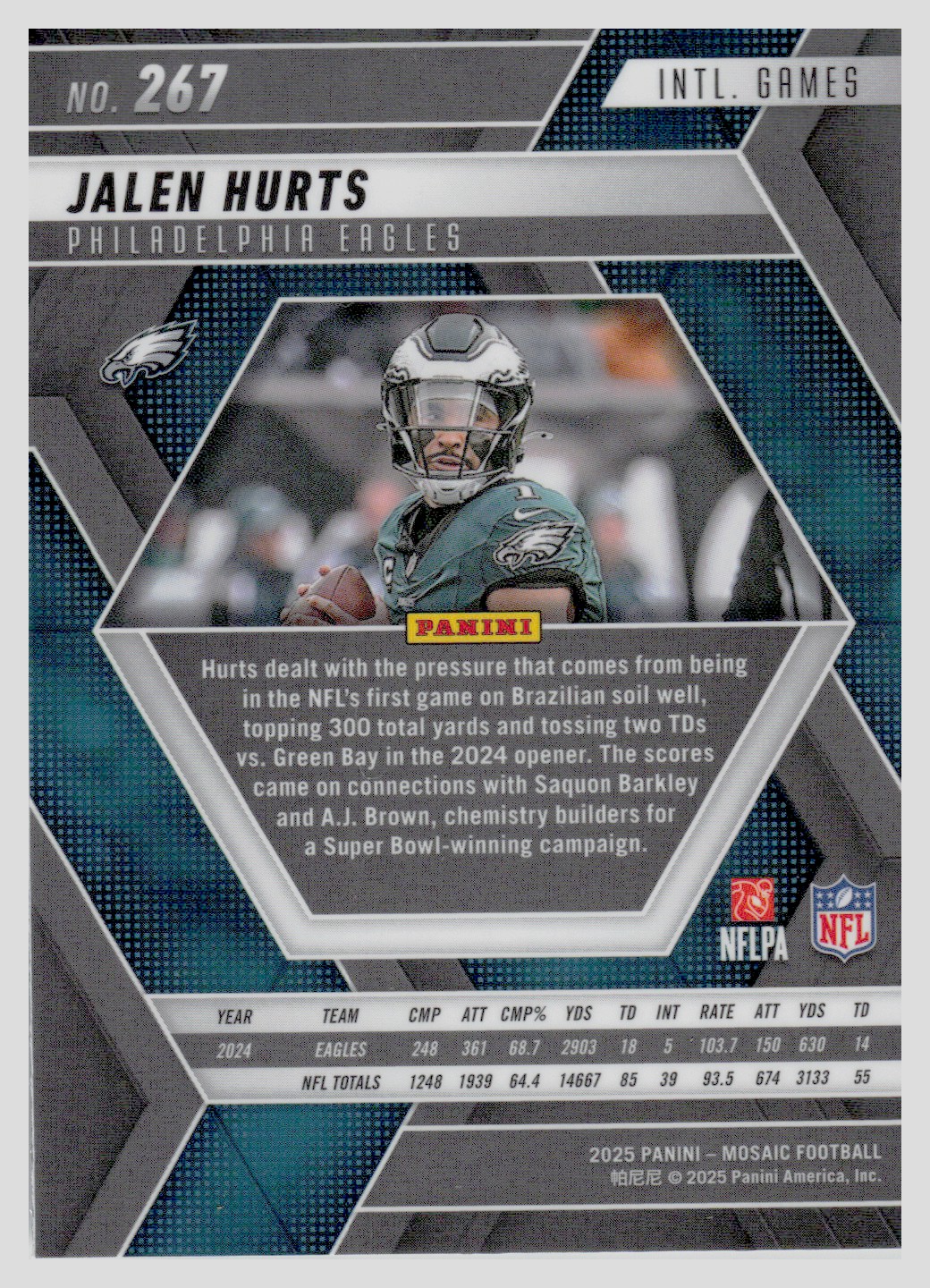 | 2025 Panini Mosaic Mosaic Jalen Hurts Philadelphia Eagles #267 |