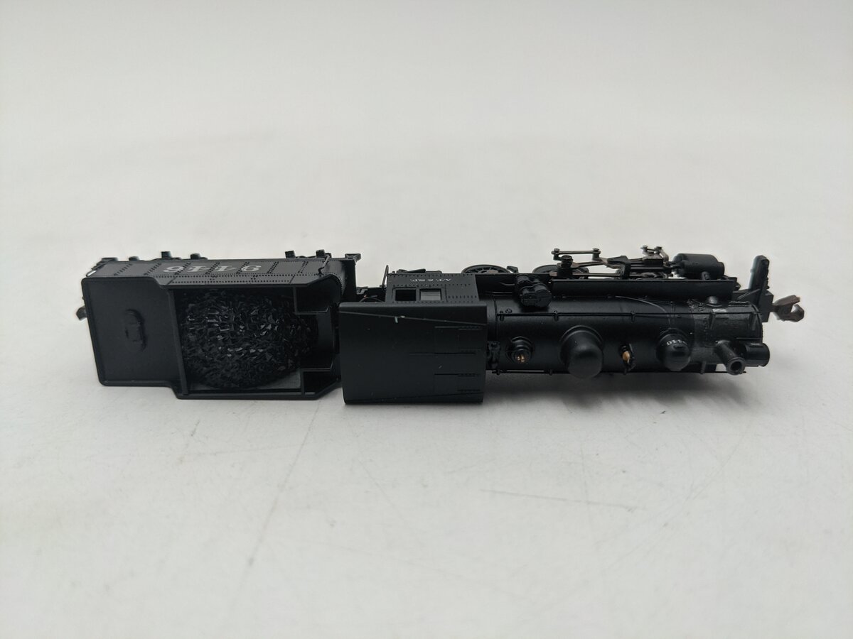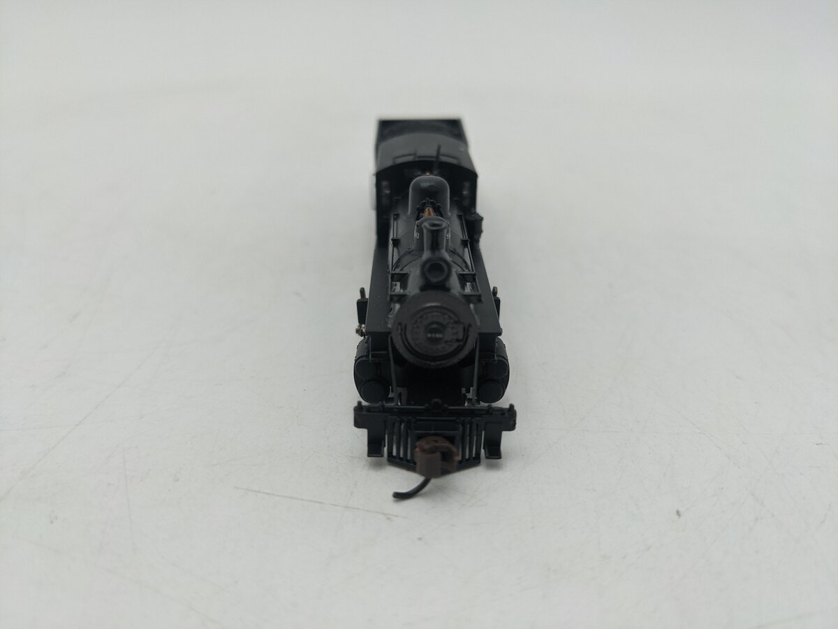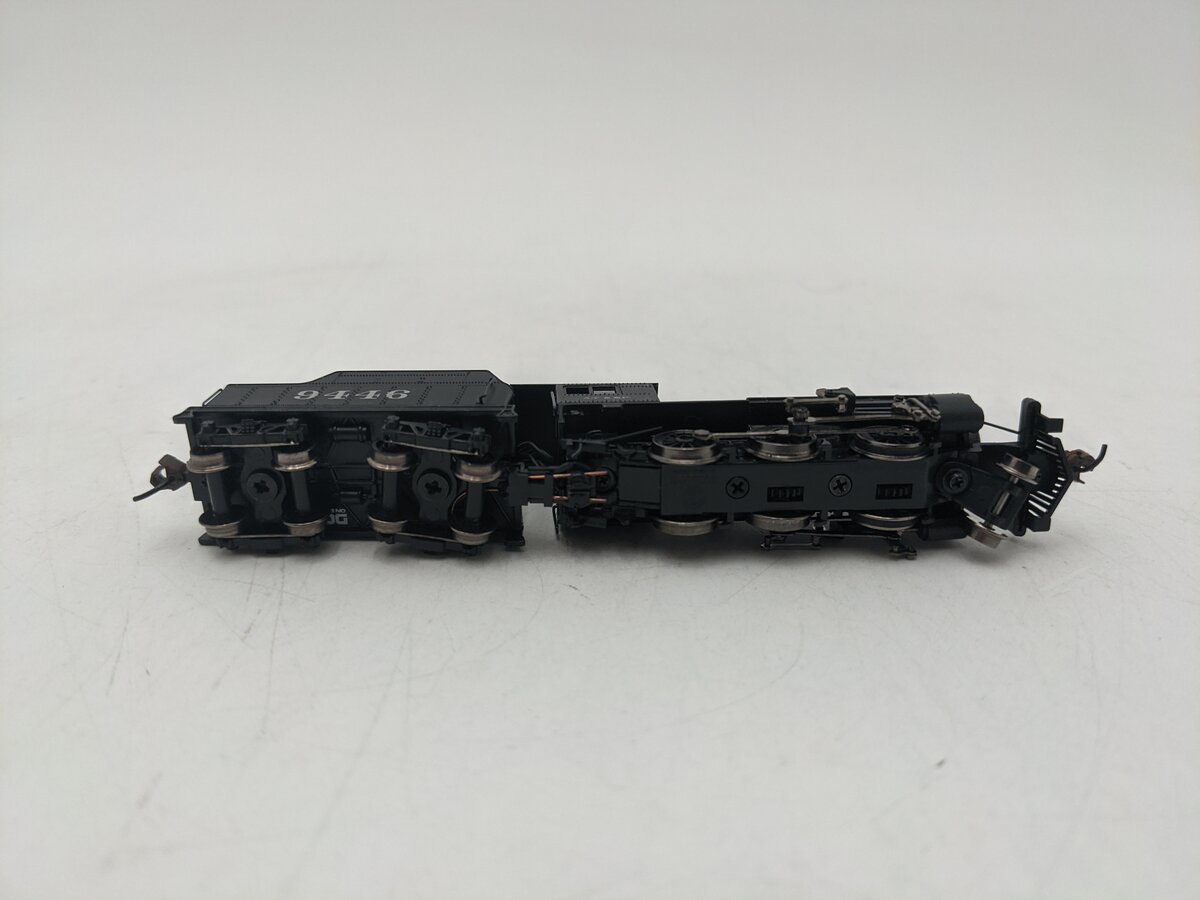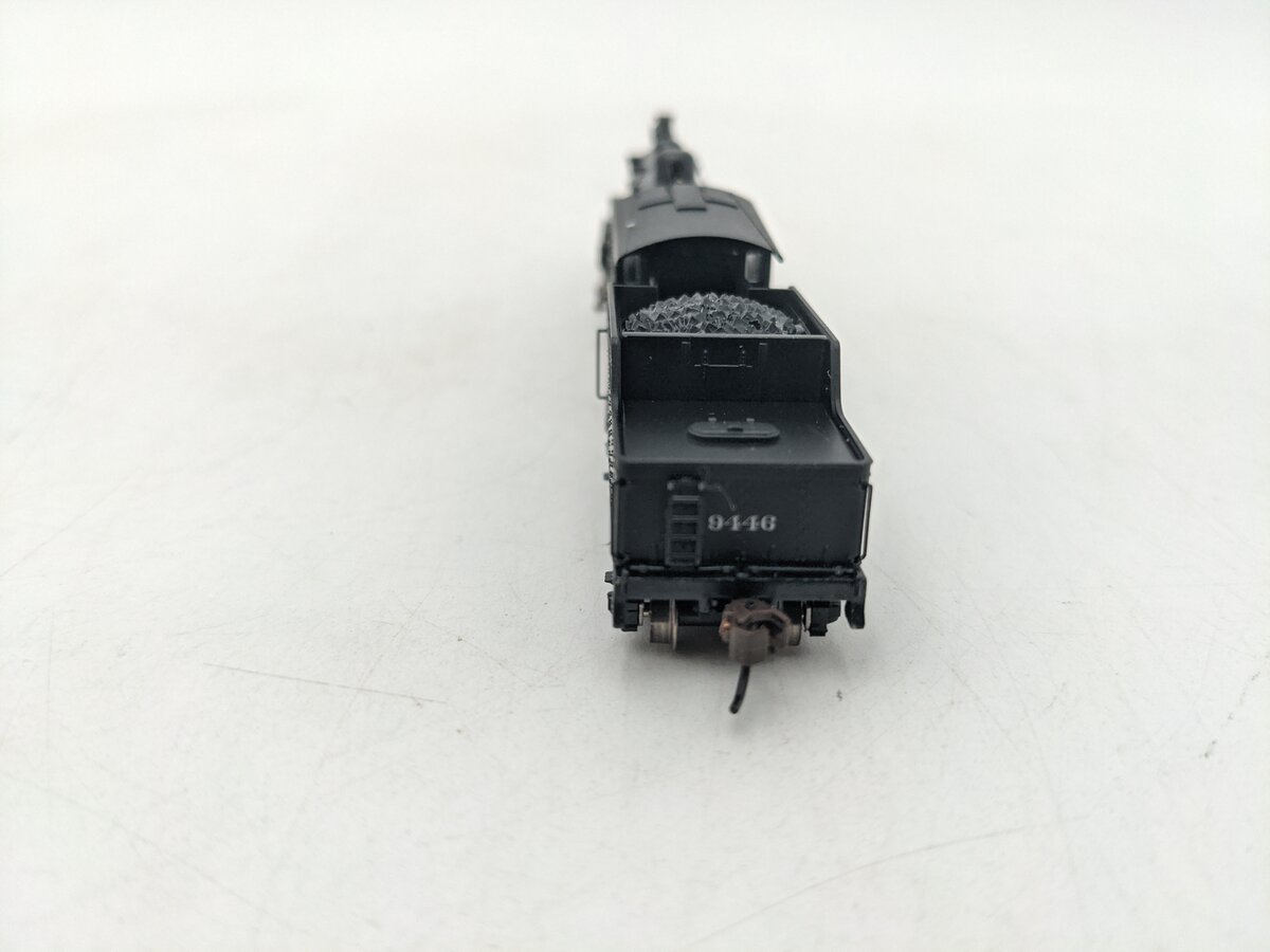 This is Bachmann 51754 N Santa Fe Alco 2-6-0 Steam Locomotive & Tender w/DCC #9446. Features includes DCC-equipped for speed, direction, and lighting, die-cast chassis, die-cast cylinders, metal valve gear and side rods, operating LED headlight and backup light, metal cut levers and handrails, metal wheels, front and rear E-Z mate mark II couplers, painted in color black.