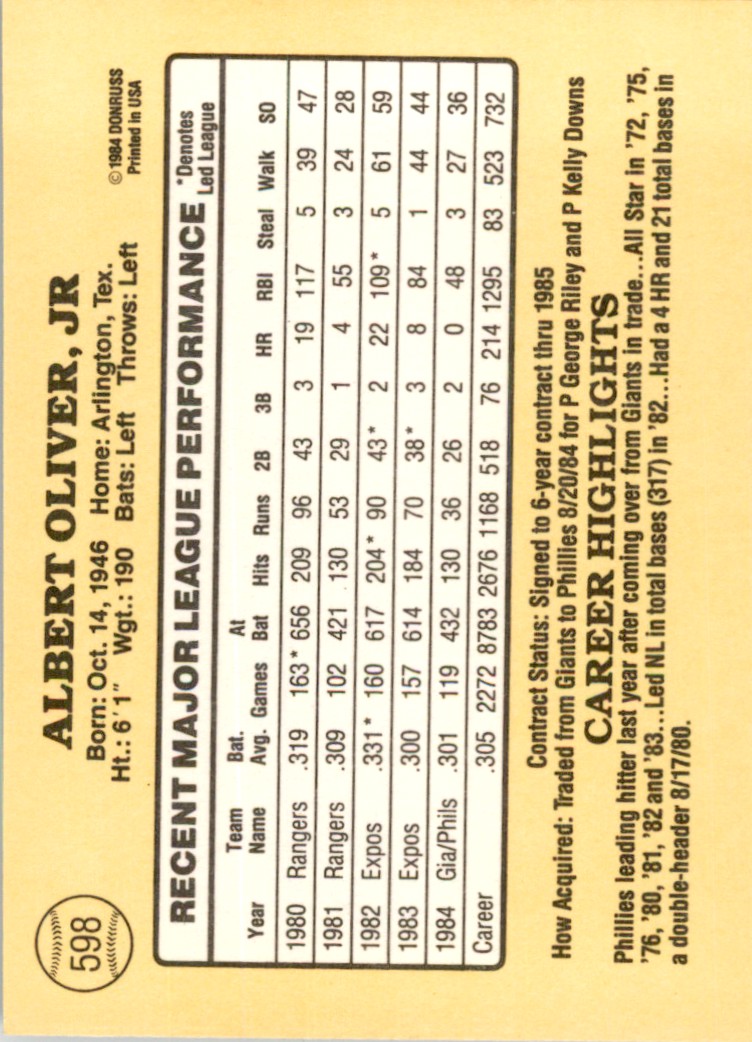 | 1985 Donruss 598 Al Oliver |