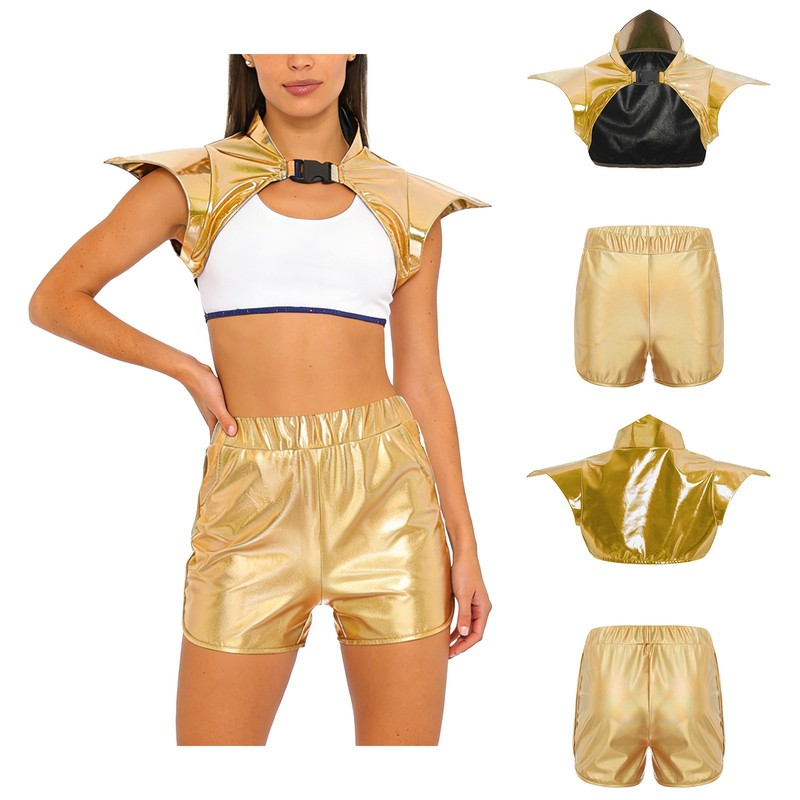 The shiny metallic design brings a trendy and eye-catching look, perfectly in line with the current rave fashion trend, making you stand out in the crowd.