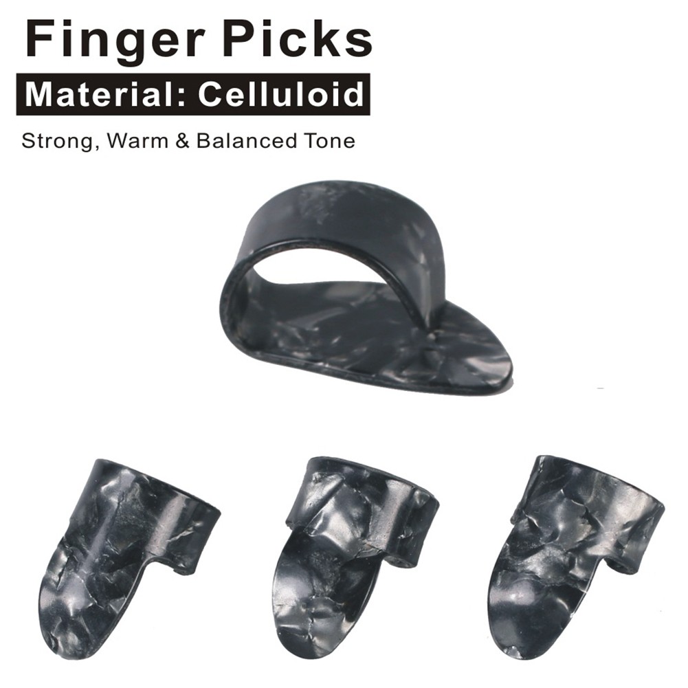 * Le paquet comprend : 1 diapositive de guitare en verre acrylique, 2 diapositives en acier, 6 pics de guitare, 3 pics à doigts en celluloïd, 1 à pouce en celluloïd et 1 boîte.