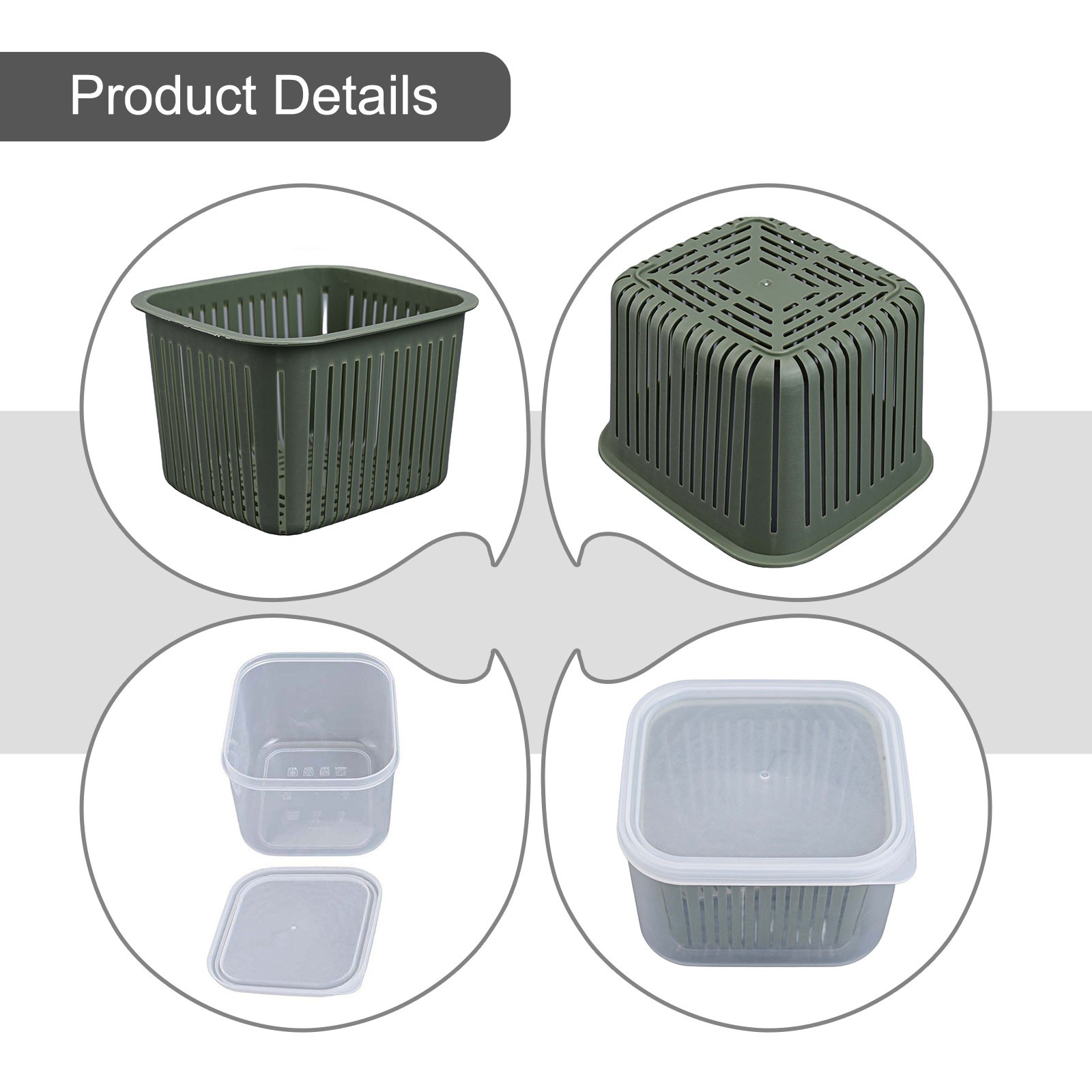 * Panier de drainage puissant : notre passoire a des trous allongés qui drainent l'eau efficacement et favorisent une bonne circulation de l'air, l'excès d'humidité et gardent les légumes frais et pour croustillant. Les hautes jambes éloignent le panier de l'eau stagnante à l'intérieur du récipient, améliorant pour encore la fraîcheur.