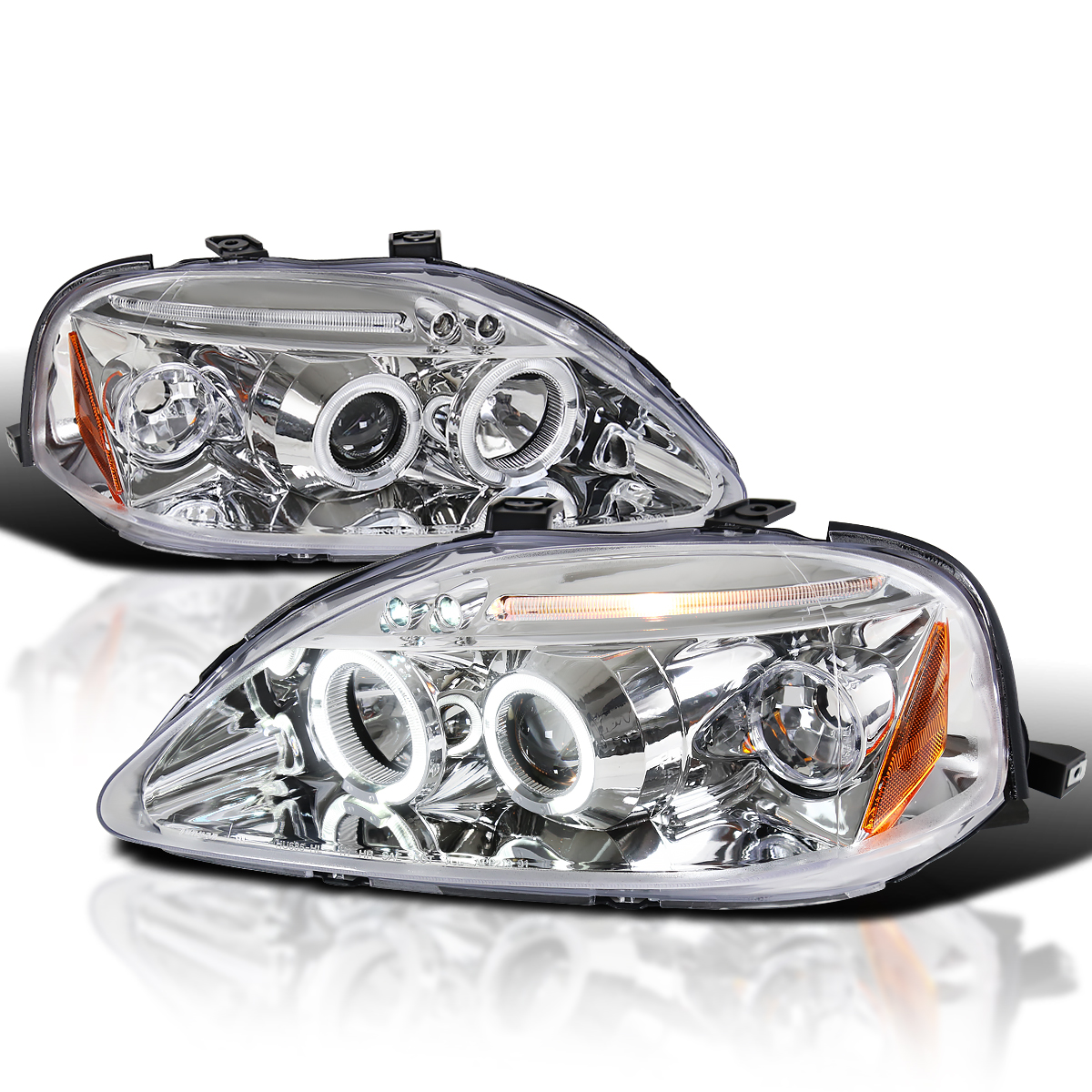 For Honda Civic Chrome Clear Dual Halo Led Projector Headlights