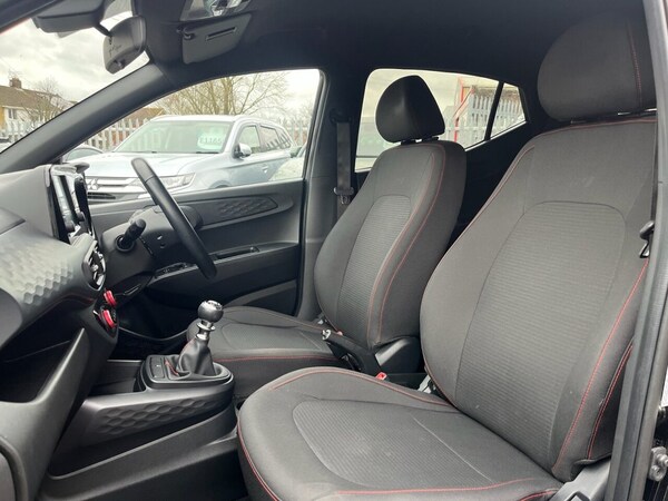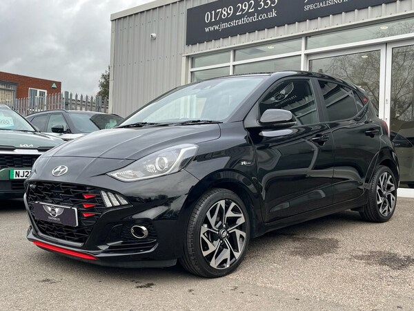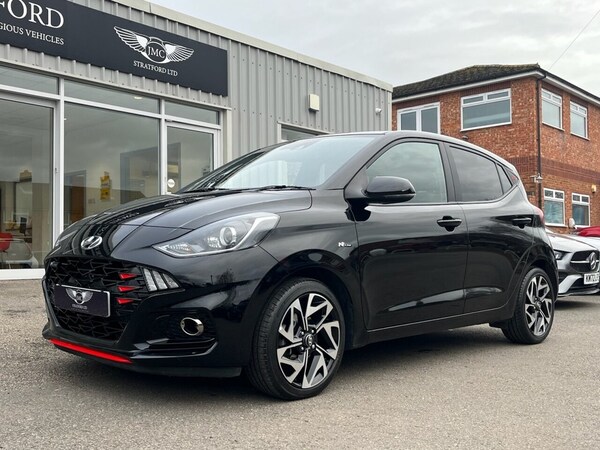 This 2022 Hyundai i10 T-GDi N Line presents an exceptional opportunity with its remarkably low mileage of just 9560 miles. This Euro 6 compliant 1.0 litre petrol model, finished in the sporty N Line trim, benefits from a clear vehicle history check and remains covered by a 6 month warranty for your peace of mind. Inside, youll find a host of convenient features designed to enhance your driving experience, including a rear view parking camera with parking assistance, automatic headlights, and seamless Bluetooth connectivity with voice recognition. Enjoy the ease of wireless Android Auto and wireless Apple CarPlay, keeping you connected and entertained on every journey. The performance of this Hyundai i10 is also noteworthy, achieving 0-60mph in a brisk 10.5 seconds. Its fuel economy is a significant advantage, returning an impressive 52 miles per gallon, and it also boasts low CO2 emissions, making it an economical choice. These highlights demonstrate how this particular i10 offers a superior combination of efficiency, technology, and driving dynamics compared to other vehicles in its class. If you are planning to come to see one of our cars, then please call us on in advance to make sure it is still available, is on site and ready to be viewed. We can provide a personalised walk-around video via WhatsApp - please just ask! All our vehicles are checked via Experian Auto Check, come fully prepared with 12 months MOT, 12 Months AA break down cover and 6 months Parts & Labour Mechanical Warranty. Finance options are available - please call for a quote. Finance acceptance is subject to status..16in Alloy Wheels, Air Conditioning - Climate Control, Bluetooth Connectivity with Voice Recogn, Wireless Apple CarPlay, Wireless Android Auto, Phantom Black, Cloth - Black with Flame Red Stitching, 16in Alloy Wheels, 12V Power Outlet - Front Console, ABS - Anti-Lock Brake System, AEB - Autonomous Emergency Brake with Forward Collision Warning System, Air Conditioning - Climate Control, Airbags - Front - Front Side and Curtain Airbags, Alarm and Immobiliser, Auto Light Control, BAS - Brake Assist System, Black B Pillar, Bluetooth Connectivity with Voice Recognition, Body Colour Bumpers, Bottle Holders - Front Centre Console - Front and Rear Doors, Central Locking - Remote Control, Centre Console Display - 8in Touchscreen, Cruise Control with Speed Limiter, Daytime Running Lights - LED, Door Mirrors - Body Coloured, Driver Attention Alert - DAA, Drivers Seat Height Adjustment - Manual, E-Call, Electric Adjustment and Heated Door Mirrors, Electric Windows - Front and Rear, Electronic Stability Control - ESC, Exterior Door Handles - Body Coloured, FCA - Forward Collision Avoidance Assist, Front Fog Lights, Front Grille, Front Head Restraints - Vertical and Horizontal Adjustment, Front Passenger Airbag De-Activation Switch, Front Windscreen Wipers - Intermittent Function, Glove Compartment, HAC - Hill-Start Assist Control, Head Restraints - Rear with Vertical Adjustment, Headlights - Bi-Function Projection Headlamps, Headlining - Black, Height Adjustable Steering Column, High Beam Assist, Honeycomb Design Detail - Dash and Door, Indicator Lights - Door Mirror, Interior Door Handles - Metal Paint Effect, Interior Light - Cabin and Luggage Compartment, LED Rear Combination Lights, Lane Departure Warning System with Lane Keeping Assist, N Line Badging, N Line Branded Gear Stick, N Line Branded Leather Wrapped Steering Wheel, N Line Package, Power Assisted Steering, Privacy Glass - Rear Side Window and Tailgate, Rear Spoiler with Integrated Brake Light, Rear Windscreen Wiper - 1 Speed Non Intermittent, Rear-View Parking Camera, Second Remote Key, Speakers - 2 Front - 2 Rear, Split Folding Rear Seats - 60-40, Steering Wheel with Audio - Phone and Cruise Controls, Trip Computer, Tyre Pressure Monitoring System - TPMS, Tyre Repair Kit, USB Connectivity Port - 1 Front, Wireless Android Auto, Wireless Apple CarPlay