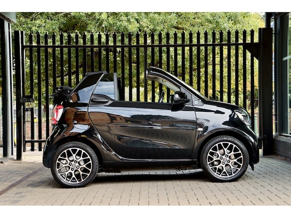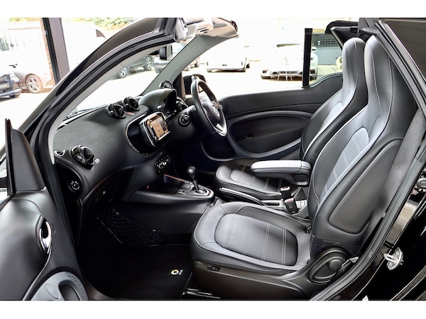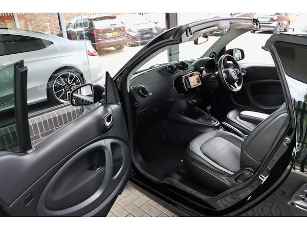 Saint Motors is delighted to offer this eye-catching 2020 Smart fortwo Prime Prime Exclusive Cabrio – a luxurious and sophisticated all-electric convertible. This model is a particularly special find, representing the final iteration of the fortwo line, featuring the desirable facelift which includes the modern, striking full-LED headlamps and updated styling cues that ensure it stands out from the crowd.Finished with sleek solid black body panels, this top-of-the-range Prime Exclusive model is loaded with premium features, including a soft top roof and distinctive 16"" 8-Y-spoke alloy wheels in diamond cut/black finish. The luxurious interior boasts heated black leather upholstery with grey stitching, a multifunction steering wheel and ambient lighting. Designed for all-season comfort, it also includes the sought-after Winter Package for pre-entry climate control and enhanced insulation.As a convertible, it offers a unique blend of open-top fun and silent, zero-emissions motoring, making it perfect for city driving or coastal cruising.Electric Motor – 82 BHP (60 kW)Single-Speed Automatic Gearbox0–62 mph in 11.9 secondsTop Speed: 81 mphReal-World Range: approx. 80 milesVehicle Summary: 2020 (20 Plate) LED headlights 26,050 miles Final Model Year / Last of the Line 1 Owner Full Electric HPI Clear Prime Exclusive Specification Winter Pack & Leather InteriorThis stunning fortwo Cabrio represents a rare opportunity to own the most exclusive, well-equipped version of this iconic city car. It combines eco-friendly motoring with open-air excitement and a surprising level of luxury, all in the definitive edition of the model.At Saint Motors, we specialise in sourcing high-quality performance and prestige vehicles.Part exchange welcome Contact us now on to arrange a viewing, a personalised video walkaround, or to secure this incredible electric convertible.. 12 Volt Socket with Cover, Access to Smart EQ Control - 3 Years From Activation - Individually Extendible Thereafter, Roof Antenna, Smart Media-System, TomTom Live Services - 3 Years From Activation, Two Lower Mid-Range Speakers in the Front Doors, Cruise Control with Limiter - Variable Speed Limitation, Exterior Temperature Indicator with Frost Warning, Instrument Display with Battery Charge Status and Power Display, Owners Manual and Service Booklet - English, Rear Parking Aid with Acoustic Warning and Reversing Camera, Tyre Pressure Monitoring System, 16in Alloy Wheels - 8-Y-Spoke Painted Black with High-Sheen Finish, Breakdown Kit with Air Compressor and Sealant, Door Mirror Caps in Tridion Colour, Door Mirror with Aspherically Curved Mirror Glass on Driver Side, Door Mirrors - Electrically Adjustable and Heated, Draught-Stop, Electric Tritop Fabric Soft Top in Black - Fully Automatic - Heated Glass Rear Window and Grey Headliners, Electric Windows with Convenience Feature and Obstruction Sensor, Radiator Grille in Body Colour, Summer Tyres, Tridion Safety Cell in Black Solid Paint, Front Fog Lamps with Cornering Function, Full-LED Headlamps with Main and Dipped Beam Plus Integral Indicators and Daytime Running Lights, Headlamp Range Adjustment - Manual, Third Brake Light Featuring LED Technology, Ambient Lighting, Automatic Climate Control, Automatically Dimming Rear View Mirror, Backrest Adjustment with One-Touch Function for Driver and Passenger, Boot Lighting, Centre Console with Roller Cover and Centre Armrest in the Front (folding), Charging Cable Bag, Comfort Windscreen Wipers with Intermittent Wiper Control and Automatic Wipe-Wash Function, Dashboard and Door Centre Panels in Black Fabric and Accent Trim Parts in Black, Drivers Seat - Height Adjustable, Floor Mats - Velour - Black, Front Passenger Seat with Through-Loading Function - Fully-Folding Backrest, Heated Seats for Driver and Front Passenger, Height Adjustable Steering Column, Instrument Cluster with 3.5-inch Colour TFT Display and Trip Computer, Interior Door Handle - Matt Chrome, Lockable Glove Compartment, Luggage Compartment Roller Cover with Mesh Bag, Multifunction Steering Wheel in Leather in a 3-Spoke Design Steering Wheel Bezel in Anthracite, Rain-Light Sensor, Reading Light for Driver and Passenger, Remote Soft Top Release with 3-Button Convenience Key, Retaining Strap for Securing Items on the Front Passenger Seat, Roof Lining - Black, Service Cover - Lockable, Shift Knob in Black Leather, Storage Compartment in Tailgate, Stowage Compartment in the Doors with Net, Stowage Net on Centre Console, Sun Visor for Driver with Parking Ticket Holder and Front Passenger, White Side Indicators, 22kW Onboard Charger, Charging Cable - Household Socket, Charging Cable - Wallbox-Public Charging Stations, Electric Power Steering, Mode 2 Charging Cable - Household Socket, Mode 3 Charging Cable - Wallbox-Public Charging Stations, ABS - Anti-Lock Braking System with Electronic Brake Force Distribution, Acoustic Presence Indicator, Active Brake