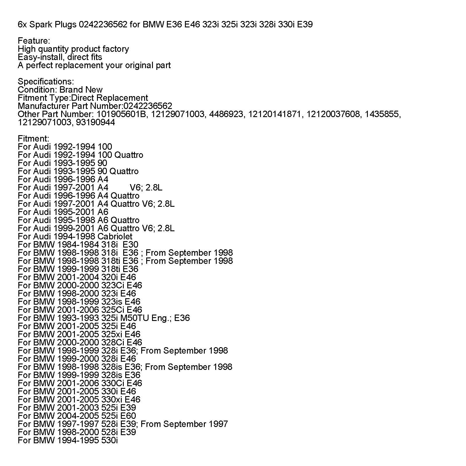 6x Zündkerzen 0242236562 für BMW E36 E46 323i 323i 328i 330i E39