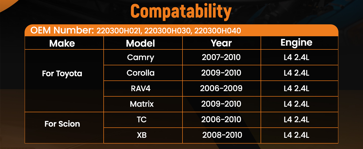 | OEM Number/ Part Number | S20097, 337-50126, TBT010, 22030-0H040, 22030-28070, 22030-0H031 , 67-8001 |