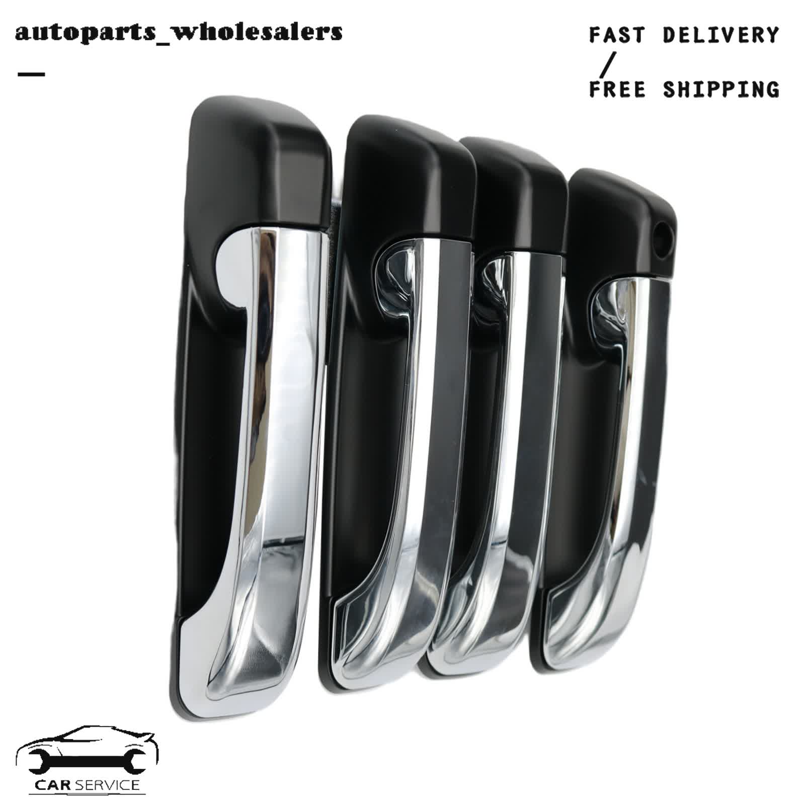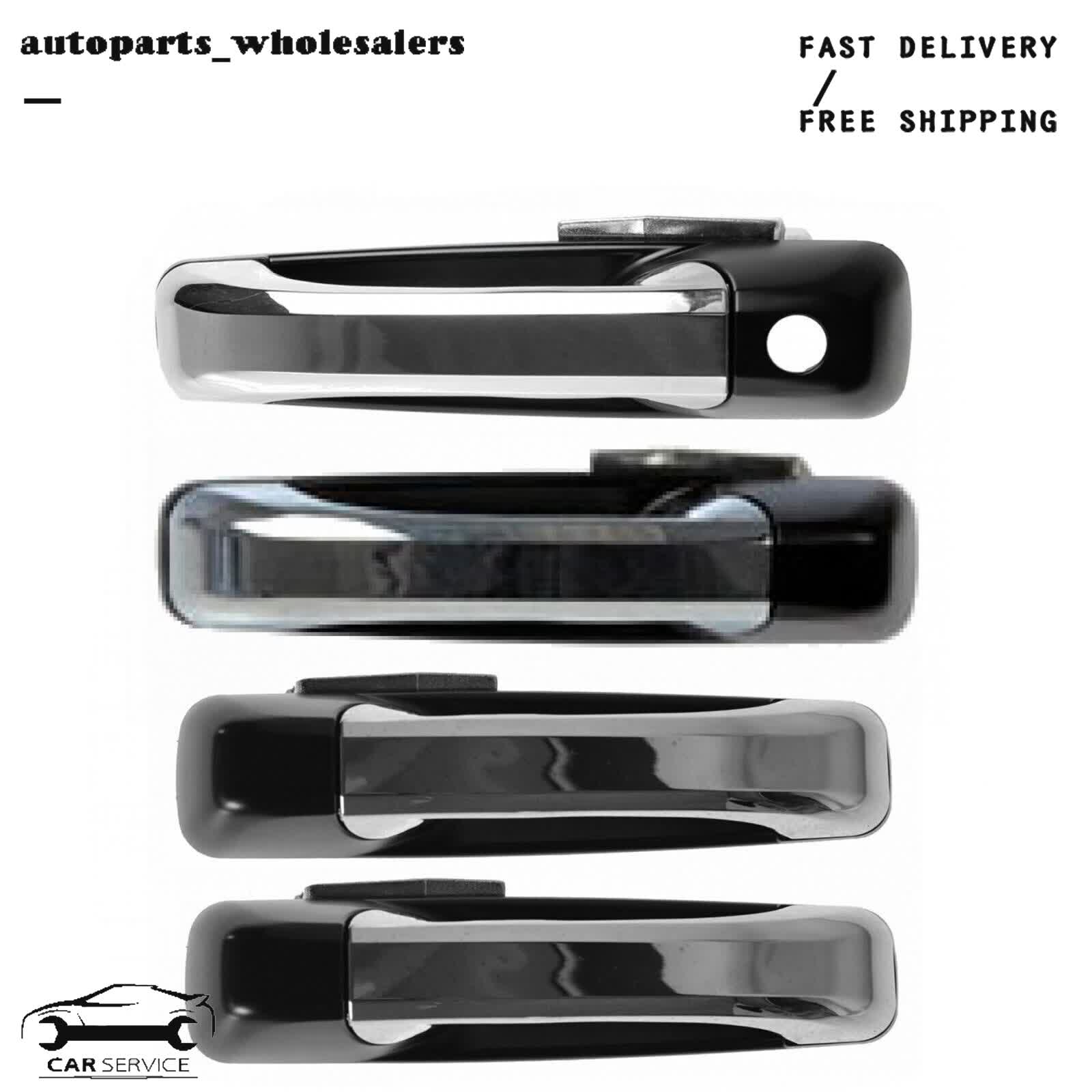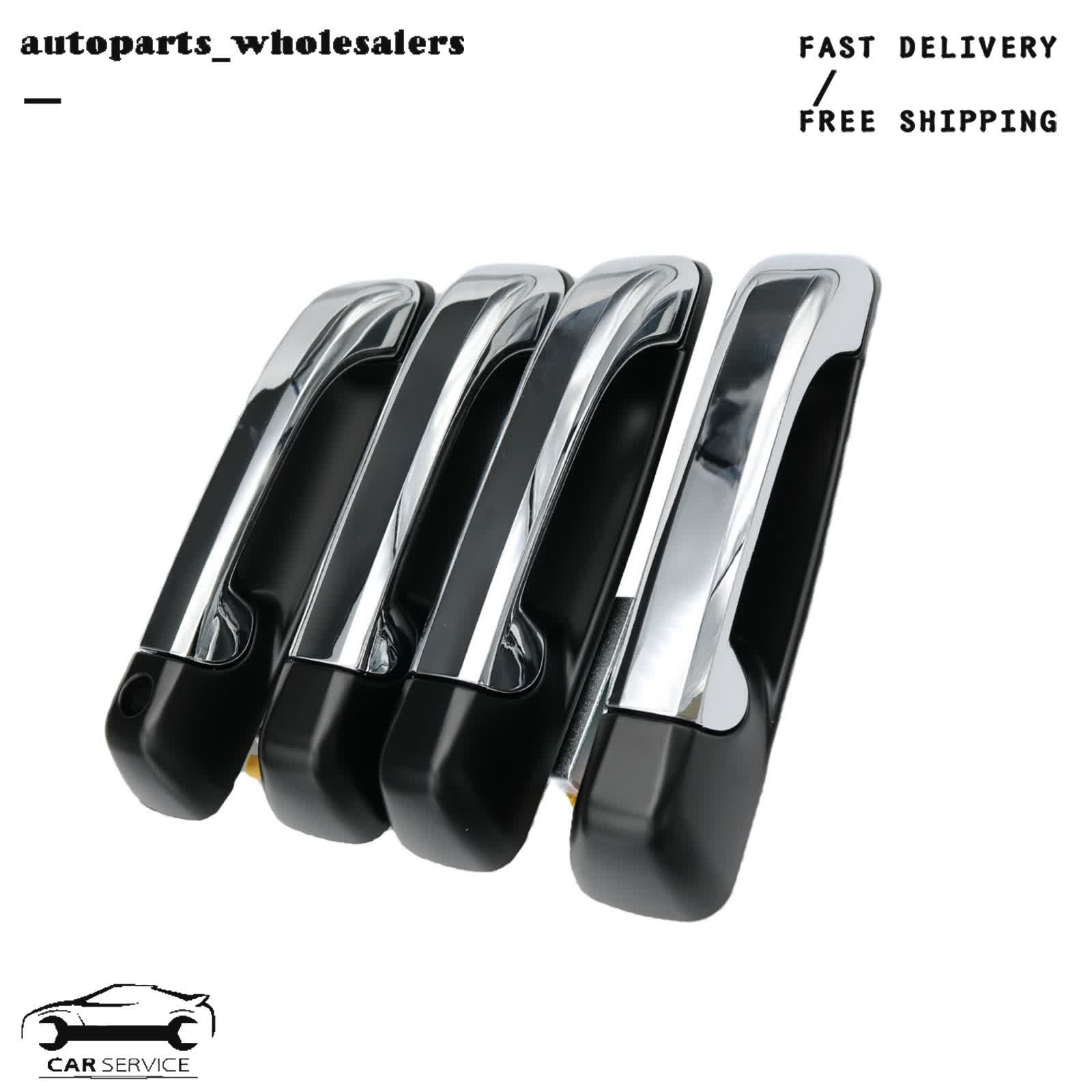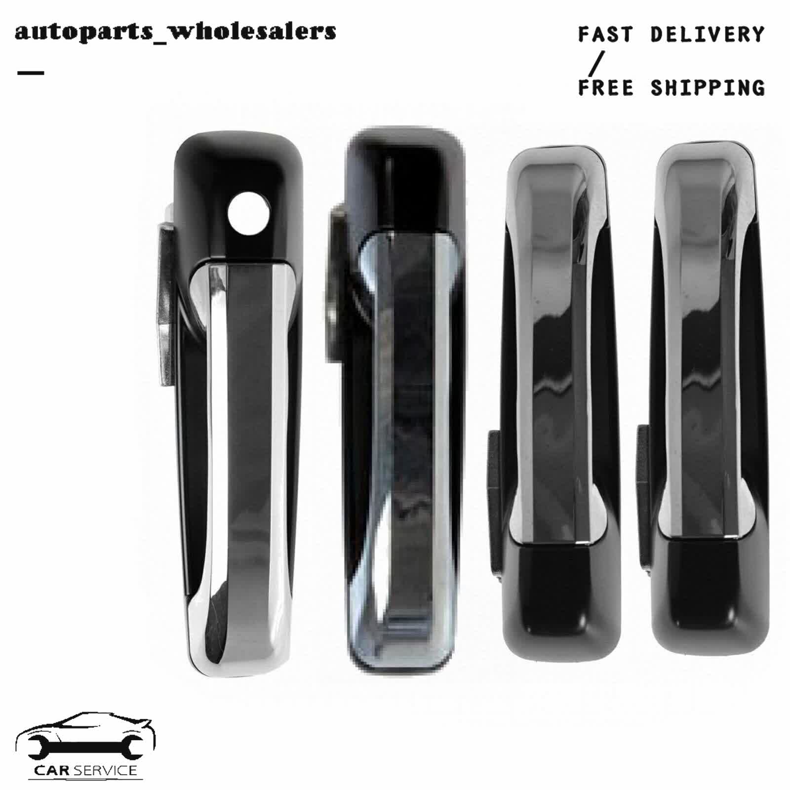 4Pcs Exterior Outside Door Handle Kit Chrome & Black