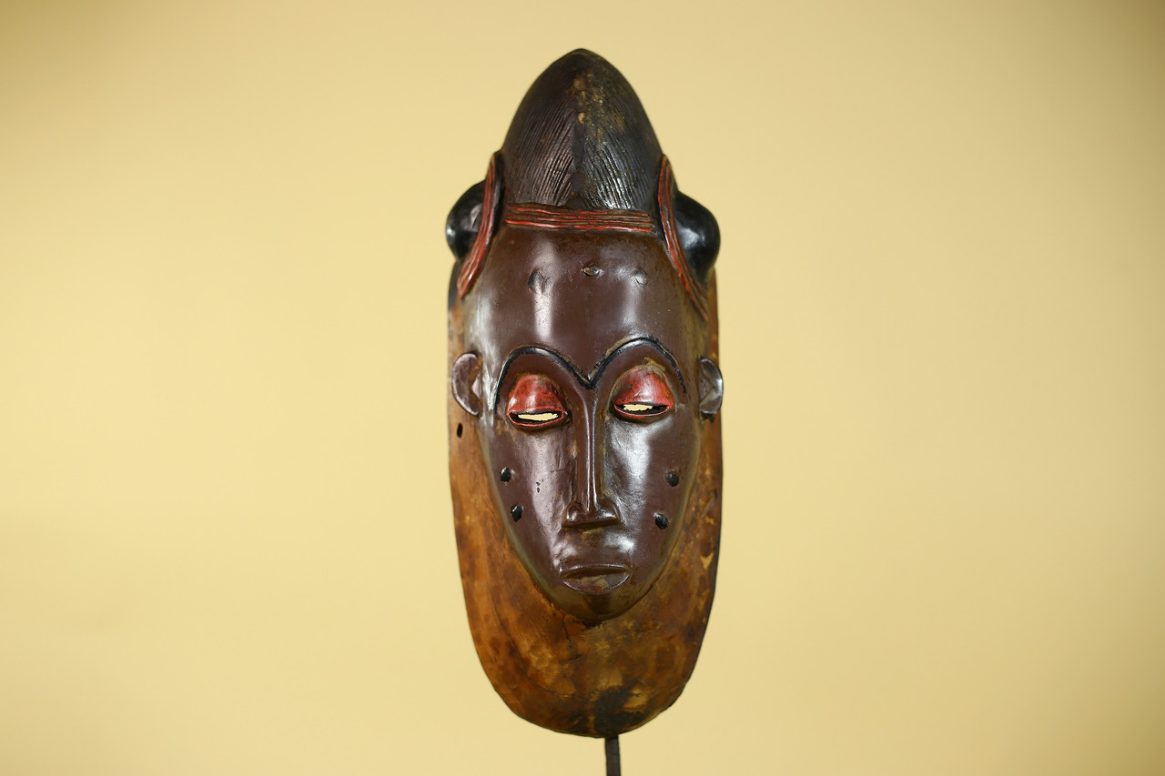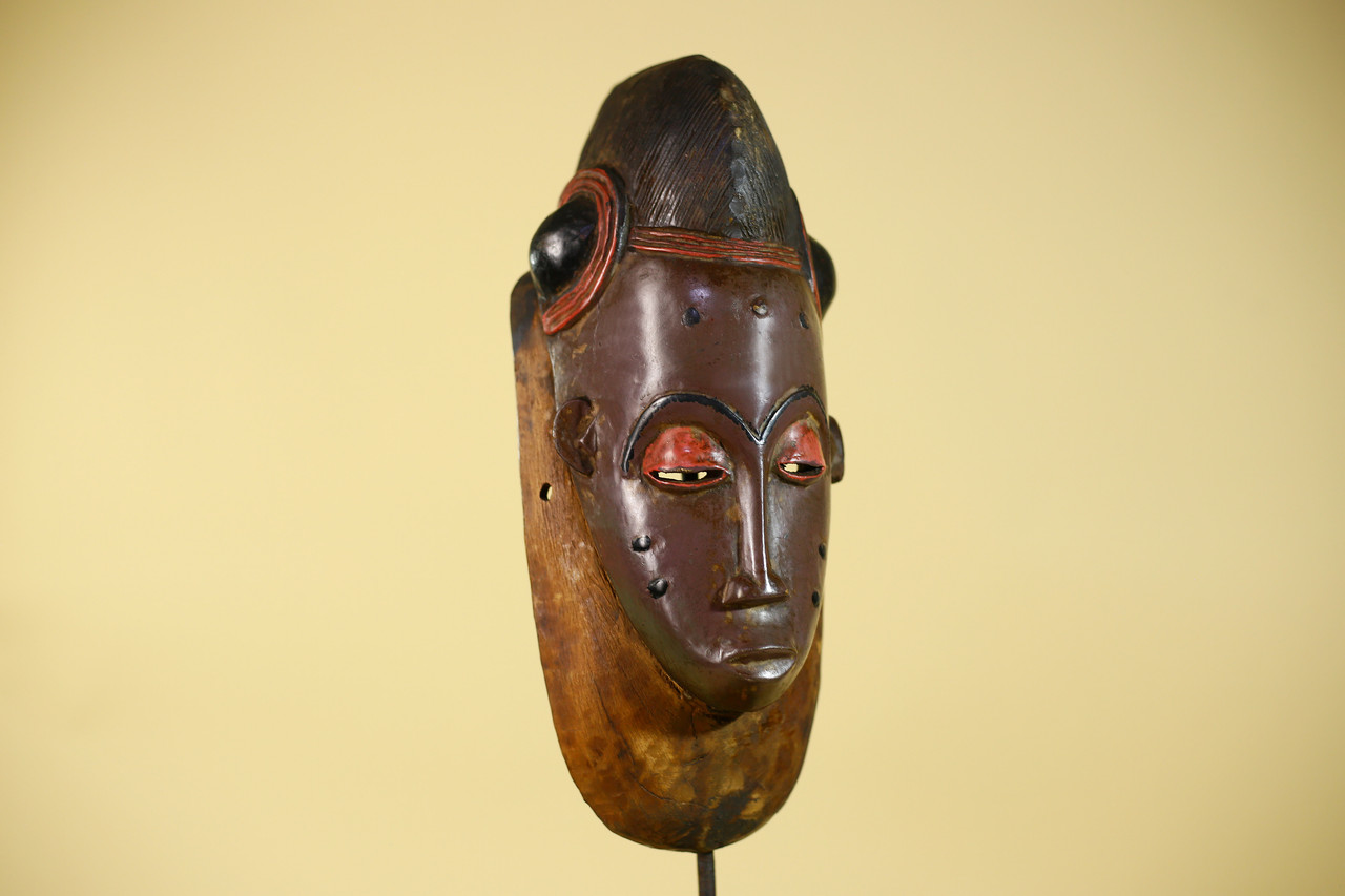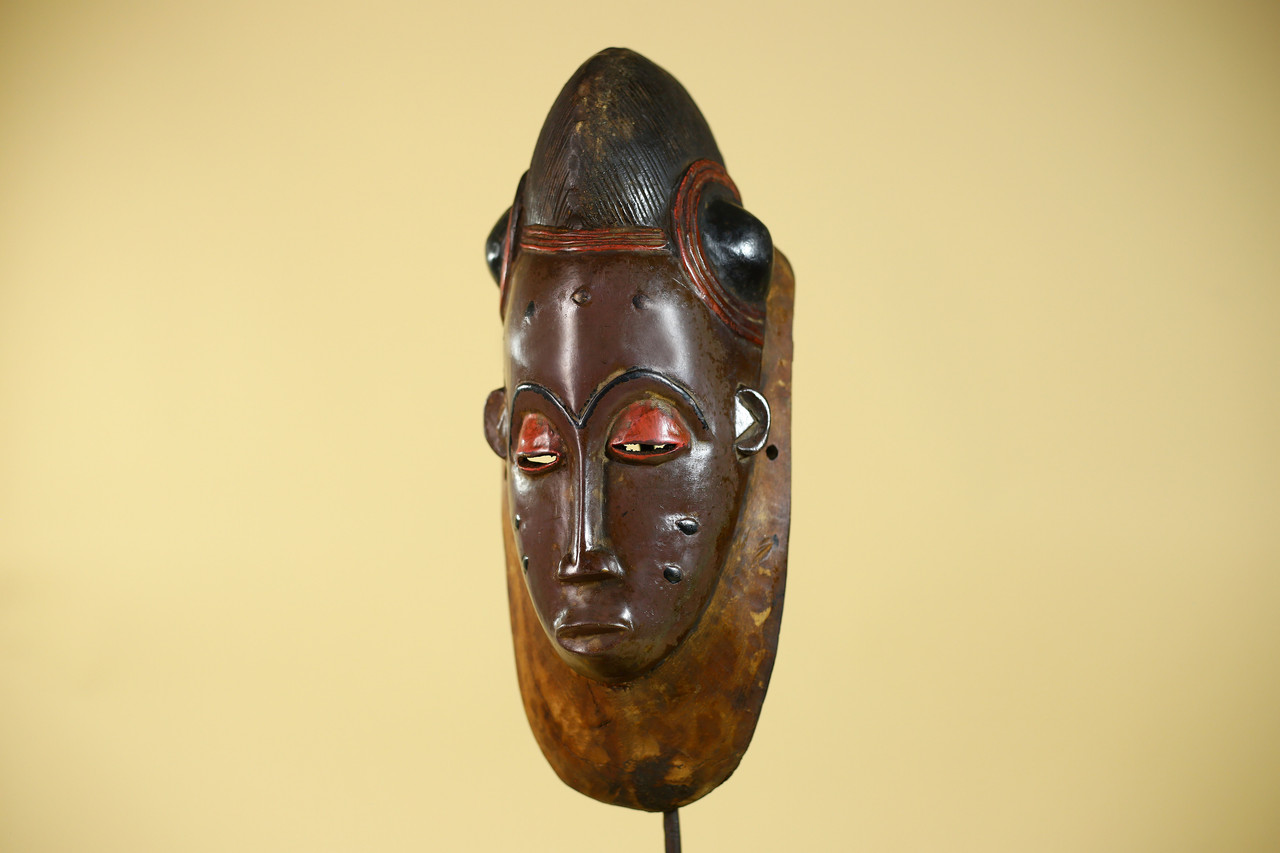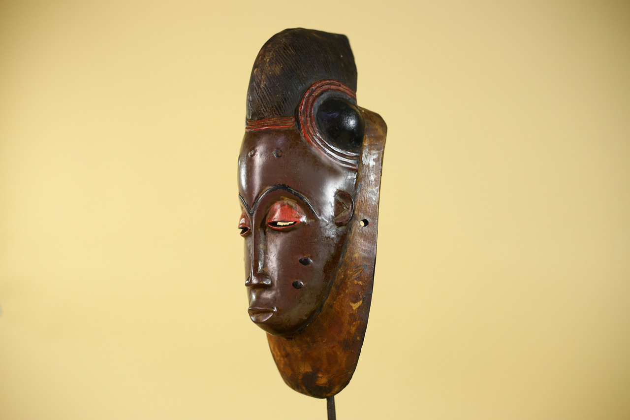 Vintage Baule African Mask Wooden Tribal Art Wall Decor from West Africa-G6143Product Description
