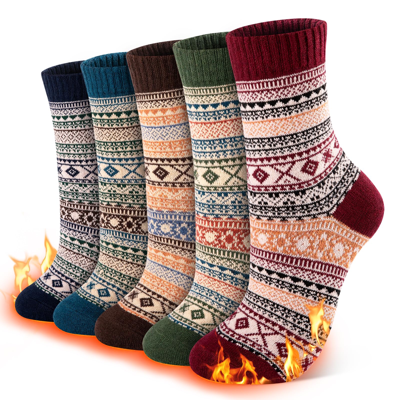 Soft & Cozy Wool Socks: Women's wool socks are made of high quality wool material to keep feet optimally warm. 5 Pairs of elegant, classic and colorful warm socks for women winter are soft, breathable, wearable and comfortable to wear