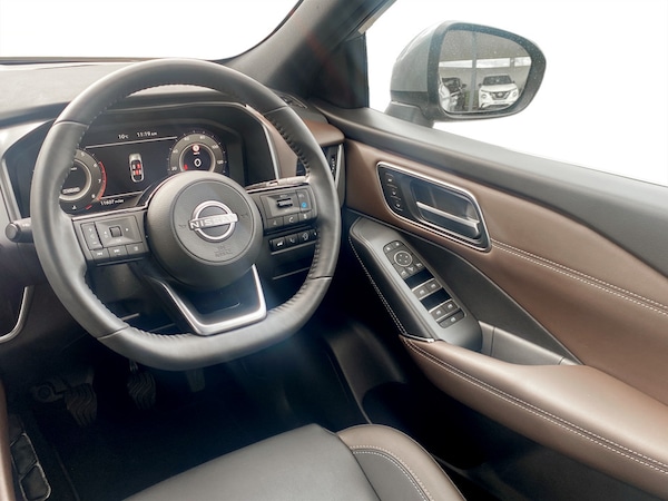 ..2 front USB-C ports, 2 rear USB-C ports, 360 degree Intelligent around view monitor with moving object detection, Advanced windscreen head up display, Blind spot intervention, Blind spot warning, Drive assist, Drive assist custom mode, Drive modes (sport, normal, eco), Driver drowsiness and attention warning, Electric speed sensitive power steering, Emergency and breakdown call, Emergency lane keep assist, Emergency Stop Signal (ESS), Engine start/stop button, Event data recorder, Front and rear parking sensors, Full Digital 12.3'' TFT Digital Combimeter, Google virtual personal assistance, Hands free power tailgate, Idle stop/start system, In-car WIFI hotspot, Intelligent Cruise control (ICC), Intelligent forward collision warning, Intelligent speed assist, Lane departure warning system, Nissan connect 12.3 inch touchscreen infotainment system, Nissan connect navigation with google maps, Nissan connect services 2.0 (Google Automotive System), Outside temperature sensor, Rear cross traffic alert, Reversing detection, Wireless Apple CarPlay/Android Auto, Wireless charging pad, Limited slip differential, 6 speakers, AM/FM audio system with DAB, Bluetooth audio streaming, Auto dimming frameless rear view mirror, Auto rear wiper when reversing, Body colour mirror caps, Body coloured door handles, Bodyside mouldings, Chrome side window finisher, Electric auto folding door mirrors, Electrically adjustable and heated door mirrors with LED turn indicator, Follow me home headlights, Glossy black bumper inserts and fenders, High beam assist, Intelligent auto headlights, LED 3rd brake light, LED daytime running lights, LED headlights with adaptive driving beam, LED rear lights, LED sequential turn lights, One touch front and rear electric windows with remote opening and closing, One touch passenger window, Partially body coloured bumpers, Rear privacy glass, Rear roof spoiler, Rear side wing doors, Rear styling plate, Reverse tilting door mirrors, Shark fin antenna, Silver roof rails, Splash free rain sensing wipers, Super RED rear LED lights, Super UV and infrared cut glass, Thermaclear heated windscreen, 3 bench rear seats in 2nd row, 3 rear headrests, 60/40 split folding rear seat bench, Chrome interior door handles, Dark headlining, Driver seat back pocket, Dual zone automatic climate control with pollen filter, Fixed Glass roof with electric sunshade, Front door with bottle holders, Heated front seats, Heated steering wheel, Height adjustable front headrests,