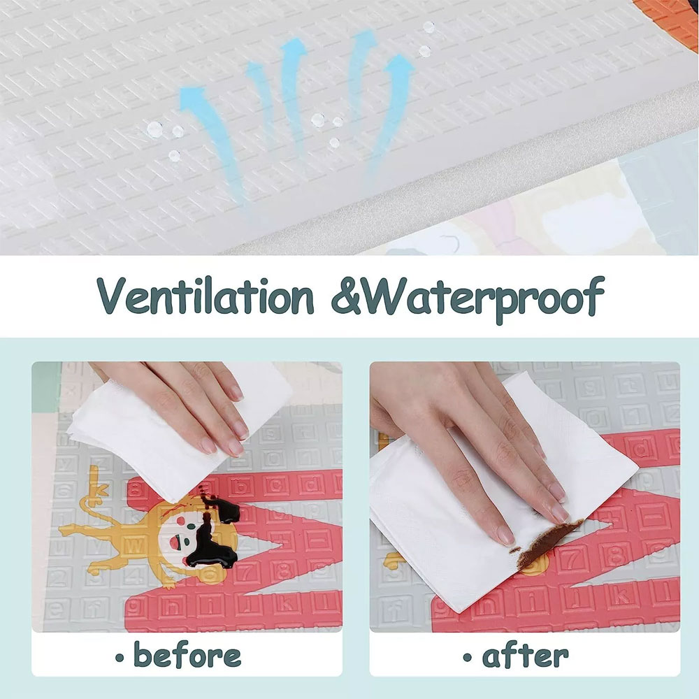 š³ćWaterproof & Non-SlipćThis foam play mat offers 100% waterproof performance for effortless cleaningāsimply wipe with a damp cloth and mild detergent to restore its pristine condition. The surface grid incorporates embedded numerals and letters, providing slip resistance while doubling as an early learning toy.