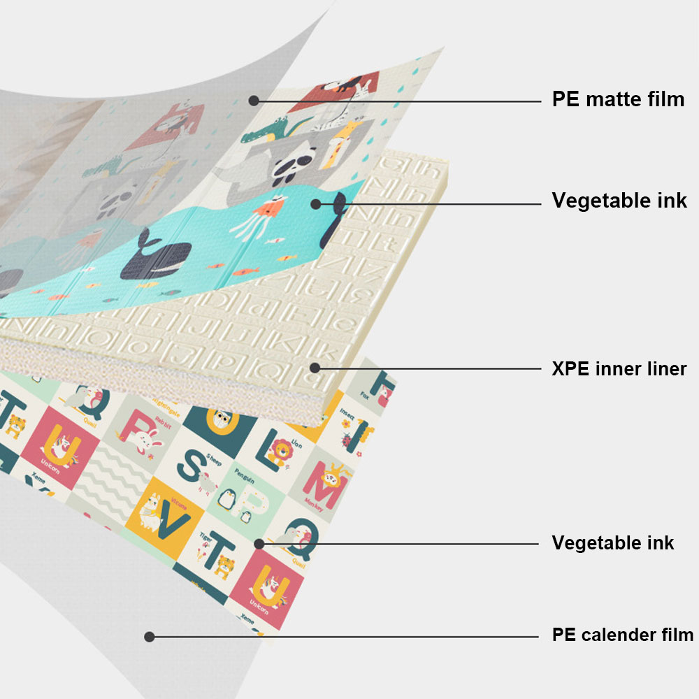 š³ćDouble-Sided DesignćFeaturing dual-sided patterns, the front showcases alphabet motifs while the reverse displays animal designs. These charming illustrations effectively stimulate visual development in young children.