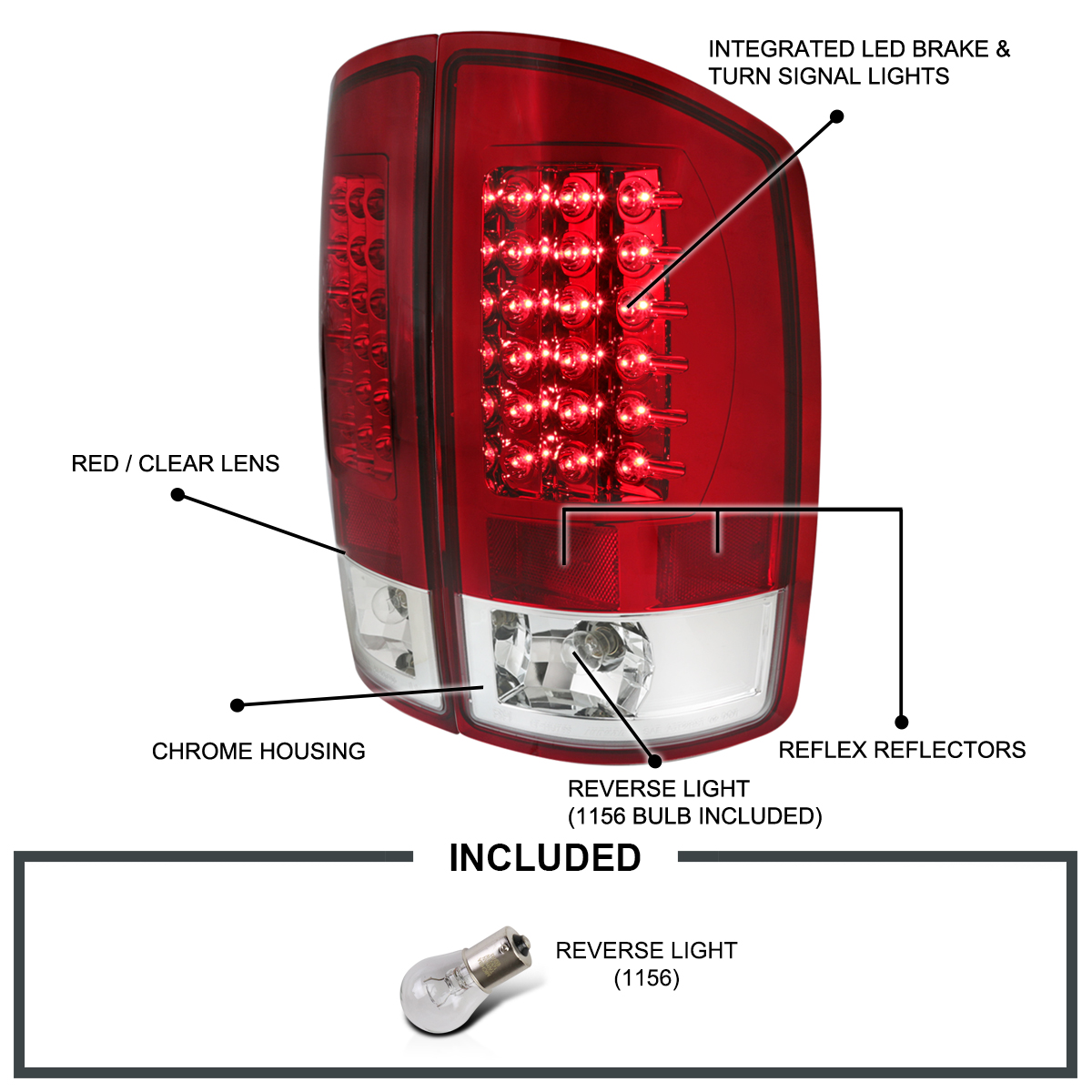 Brand new in original packaging. Exactly the same as shown in the picture! Comes with both side tail lights.High quality Red lens LED tail lights. These lights are made by an OE approved and ISO certified manufacturer with the quality meet or exceed all OE standards. Do not come with installation instructions.Professional installation highly recommended.Fitment : 02-06 Dodge Ram 1500 / 2500 / 3500 models. Do not fit for 02 2500/3500 models with old body style.
