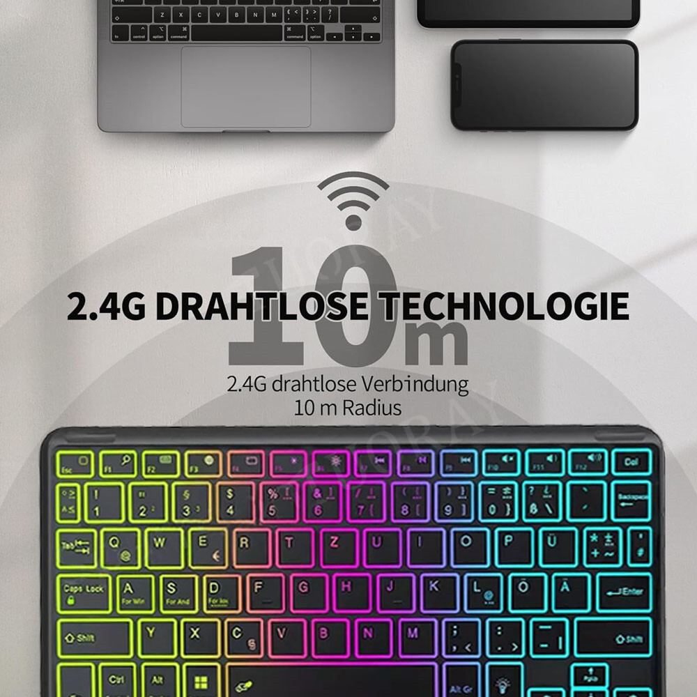 【Beleuchtete Tastatur】 Hilft worteingabe im dunkeln und bietet ein angenehmes visuelles erlebnis. Angenehmes Tipp-Gefühl und ruhige Tastenanschläge