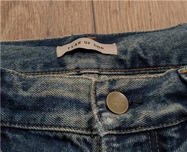 Crafted from hand-distressed, nonstretch Japanese denim, these straight-leg jeans showcase Fear of God's signature leather label on the center front and streetwise raw hems.