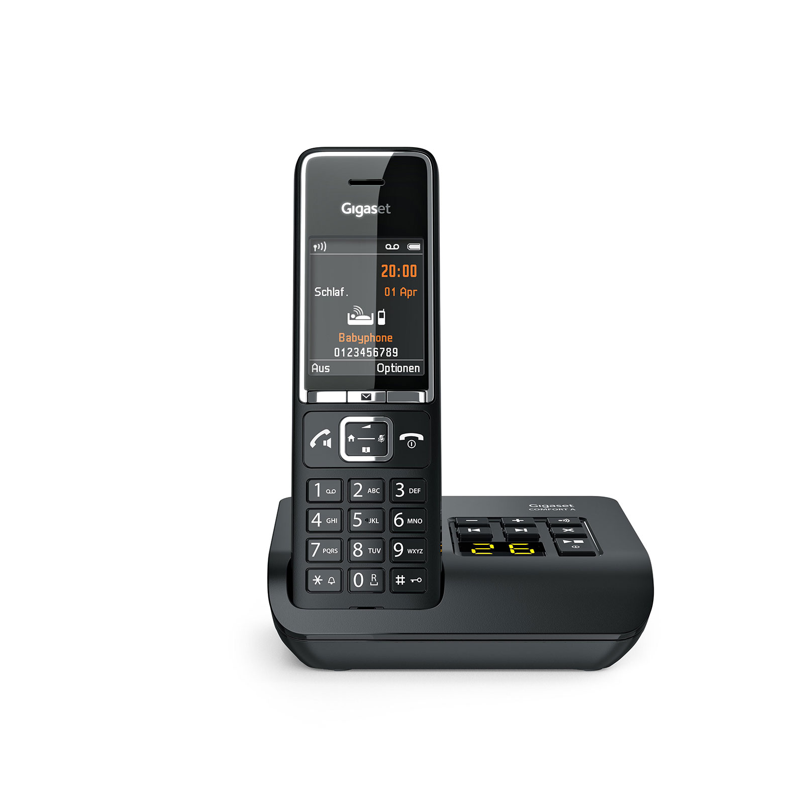 Die perfekte Symbiose: So komfortabel kann Telefonieren sein Warum sich entscheiden, wenn man alles gleichzeitig haben kann? Das Gigaset COMFORT 550 überzeugt mit zeitlos-edlem Design und perfekter Ergonomie, mit Hightech sowie höchstem Komfort. Es ist das ideale Telefon für Ihr Zuhause, im Wohnbereich und auf dem Schreibtisch. Die Technik unter seiner schicken Hülle ist innovativ, seine zahlreichen Funktionen werden Sie überzeugen. Dieses schnurlose Telefon kann sich also sehen – aber auch hören lassen: Seine Akustik ist ebenfalls exzellent. Und im Home Office haben Sie dank Headset-Anschluss sowie integrierter Freisprecheinrichtung stets die Hände frei. Die Modellvariante Gigaset COMFORT 550A bietet zudem einen integrierten Anrufbeantworter mit einer Aufzeichnungsdauer von bis zu 30 Minuten. Produktmerkmale: