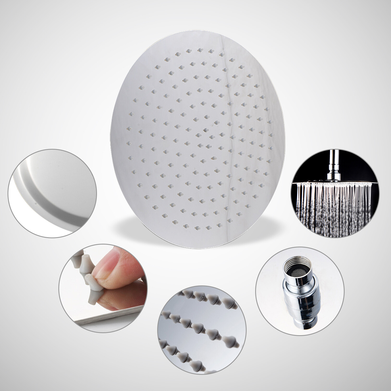 Technische Daten: Größe: 8 Zoll / 10 Zoll / 12 Zoll Form: rund / quadratisch Oberflächenmaterial: Edelstahl 304 Düse: Silikon Schnittstelle: G1 / 2 Betriebsdruck: 1.0KGS-10.0KGS Der beste Wasserdruck: 3.5-4.5KGS Wassertemperatur: 0-100 ° C (normales Leitungswasser oder gefiltertes Meerwasser mit mit leichtem Salzgehalt)