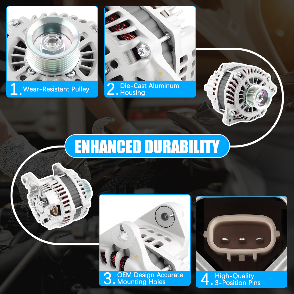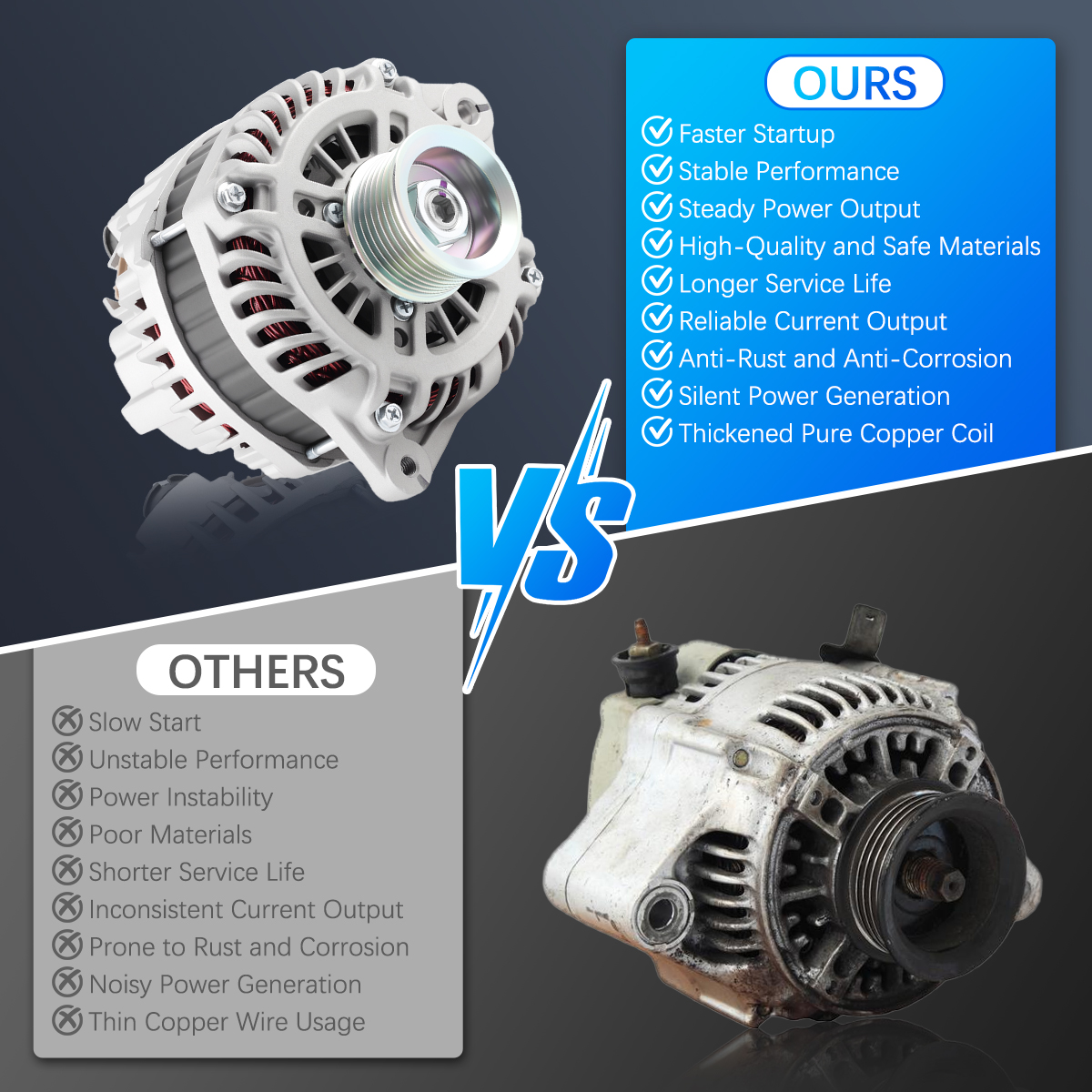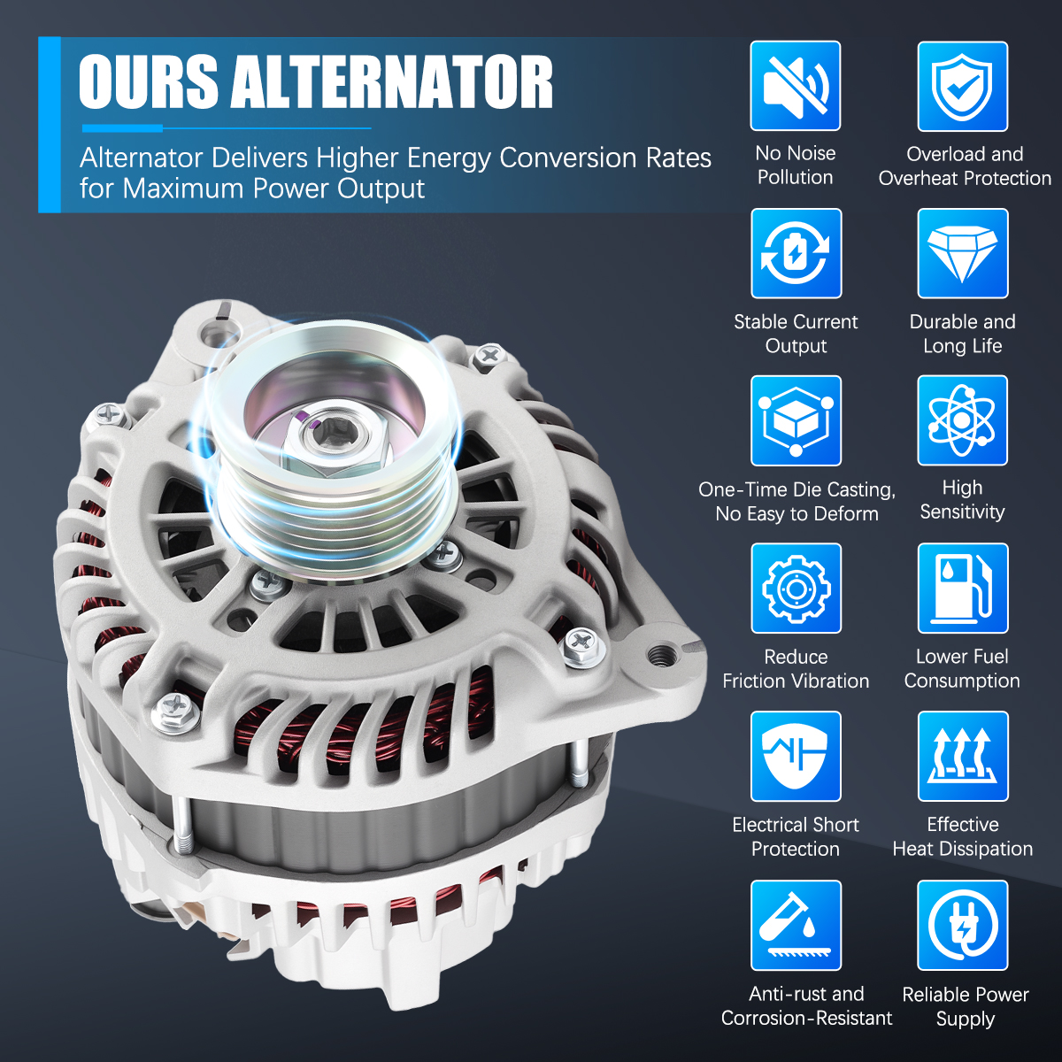 Rugged and stable car alternator, matched against OE originals for performance.