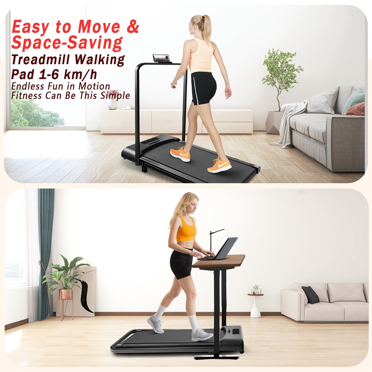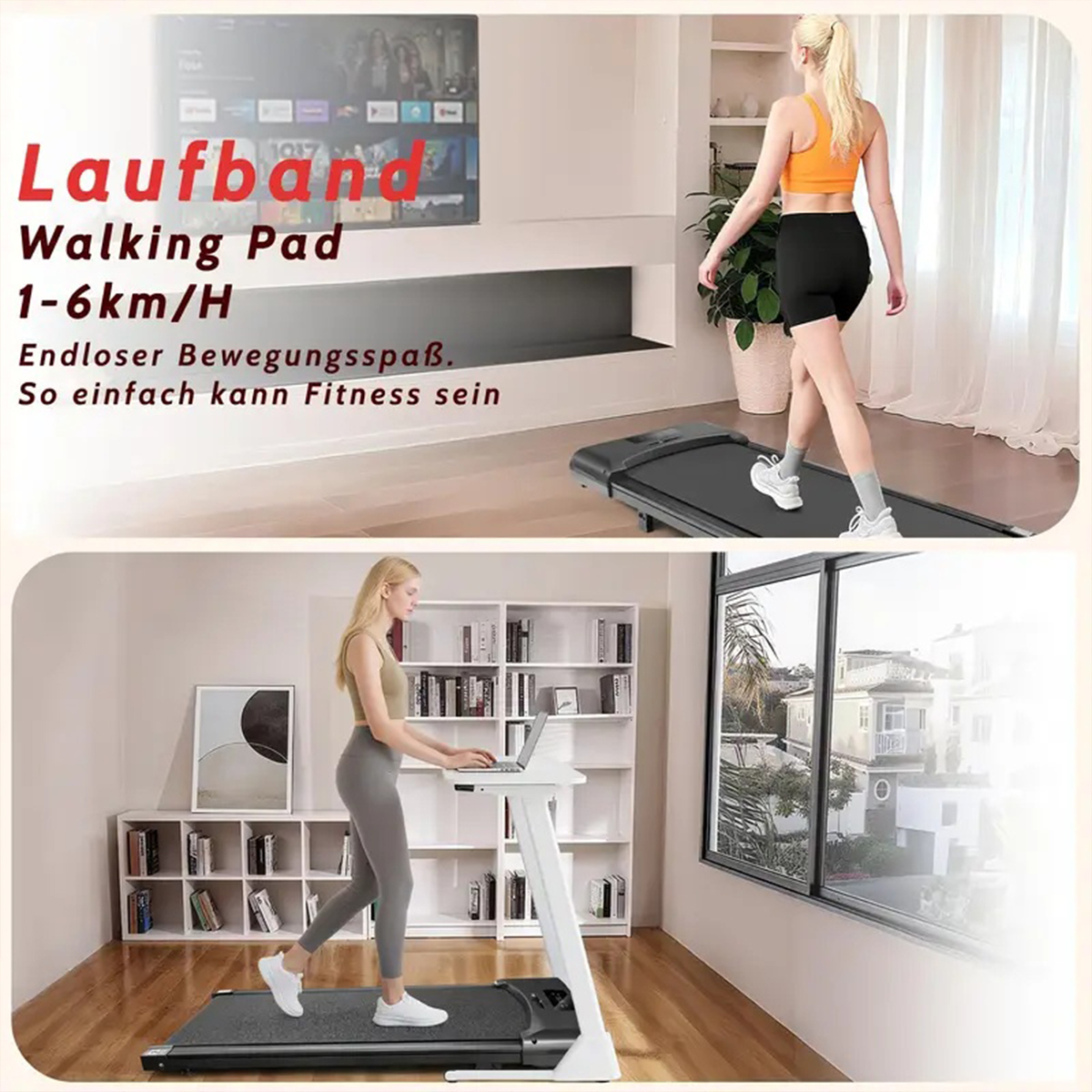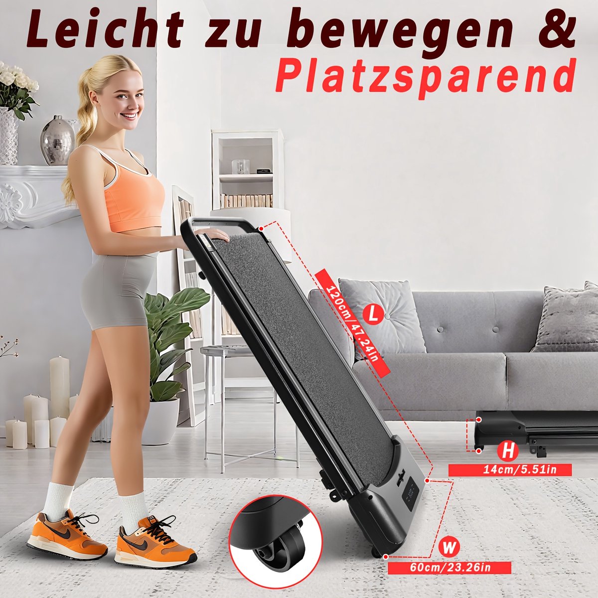 【KOMPAKT&MOBIL】Schlankes Mini-Laufband für den Indoor-Einsatz; passt unter den Tisch oder das Sofa, mit Transportrollen schnell verschoben. Flaches Design spart Platz, auch in kleinen Wohnungen. Zuerst kurze Gehpausen im Arbeitsalltag, anschließend nutzt man das Walking Pad für Warm-ups, sanfte Gehübungen und mehr Alltagsbewegung – ohne Studio-Anfahrt, jederzeit im Home-Gym