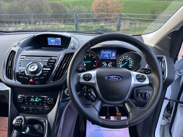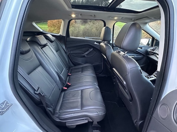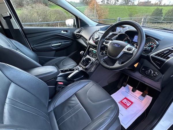 KTS Motor Company are proud to present this stunning 2015 Ford Kuga 2.0 TDCI finished in Frozen white with black heated leather interior. The car comes with 2 keys and full Service history with 8 stamps in the book. The car has only had 2 owners from new and the last owner had the car since 2019. These models are getting harder and harder to find with low owners and a complete service history. Overall it is in good condition with only minor age related blemishes in keeping with a 10 year old vehicle. The interior is free from any excessive wear or lingering odours. The car runs and drives with no known faults and everything works as it should. The car has fantastic service history with 9 stamps recorded in the book and has been serviced less than 100 miles ago. It also has had new front tyres and front brake pads. The car comes with a long MOT with no advisories expiring December 2026. Being a Titanium X it comes with good specification from standard including heated leather seats, pan roof, reverse sensors, AC, cruise control plus much more. It is clear from the condition how well this vehicle has been looked after. A real genuine example throughout that will be a credit to its next keeper. Video walkaround on request and £250 will secure any vehicle. KTS Motor Company is a family run business in North Wales. We have a fantastic reputation within our local area and strive to deliver outstanding customer service. All our vehicles come fully inspected, serviced if required and come supplied with a 12 Month MOT. All vehicles will have a 3 Months warranty provided by Warranty wise. Selected cars are kept onsite however please ring ahead prior to viewing to avoid disappointment. The majority of our cars are stored off site in a secure compound and will be brought to our showroom for a viewing. Please make an appointment to view to avoid disappointment. Rest assured you are buying from a well-established dealership with years of combined experience. Buy with confidence. For anymore information regarding any vehicle please call us on .8 SERVICES CARRIED OUT , CRUSIE CONTROL , 2 KEYS , LAST OWNER SINCE 2019 , HEATED LEATHER SEATS , Frozen White, 19in Alloy Wheels - 5x2 Spoke, 8in High Resolution Touchscreen, ABS - Anti-lock Braking System, AUX Connection, Air Conditioning - Dual Zone Electronic Automatic Temperature Control, Airbags - Drivers Knee, Airbags - Front Passenger, Airbags - Front and 2nd Row Curtain, Airbags - Side Impact, Alarm - Thatcham Category 1 with Volume Sensing and Perimeter, Appearance Pack, Armrest - Folding Centre - Rear, Audible Text Messaging, Automatic Dimming Rear View Mirror, Automatic Rain Sensing Wipers, Bi-Xenon Headlights, Bluetooth Hands-free Phone, Body Colour Exterior Mirrors, Body Colour Side Skirts, Body Coloured Front Skirts, CD Player, Centre Console - Bottle-Can Holder, Centre Console - Stowage Tray, Convenience Pack, Courtesy Light - Footwell Illumination, Cruise Control with Speed Limiter, Door Handles - Body Colour, Door Mirrors - Puddle Lights, Door Mirrors with Integrated Indicators, Drivers Airbag, Drivers Seat Lumbar Support, EBA - Emergency Brake Assist, EBD - Electronic Brakeforce Distribution, EPAS - Electric Power Assisted Steering, ESP - Electronic Stability Programme, Electric Windows - Front and Rear with One Touch, Emergency Assistance, Emergency Brake Warning, Floor Mats - Front and Rear - Velour, Ford Easy-Fuel Capless Refuelling System, Ford Power Engine Start-Stop Button, Ford SYNC2, Front Fog Lights, Front Fully Adjustable 4 Way Head Restraints, Front Lower Grille - Black, Front Parking Sensors, Front Seat - Passengers Manual Lumbar Support Adjustment, Front Silver Skid Plate, Front and Rear Body Colour Wheel Arches, Front upper grille - High-gloss black with chrome bar, Full Body Styling Kit, Gear Shift Indicator, Gearshift Knob - Leather, HLA - Hill Launch Assist, Headlights - Automatic, Headlights - Jet Wash, Headlights - Levelling System - Automatic, Heated Driver and Passenger Seats, Heated Front Windscreen, Heated Washer Jets, High Gloss Black Bumper Detailing, High Gloss Black Rear Mesh, High Gloss Silver Lower Centre Rear Diffuser, IPS - Intelligent Protection System, ISOFIX, Interior Door Lever - Chrome Finish, LED Daytime Running Lights, Large Rear Spoiler, Load Compartment - Tie Down Hooks, Locking Wheel Nuts, MP3 Compatibility, Multi-Colour Ambient LED Lighting, Navigation - 3D Building Rendering and Michellin Guide, Panorama Roof, Park Assist - Active, Parking Sensor - Rear, Pollen Filter, Power Fold Door Mirrors, P