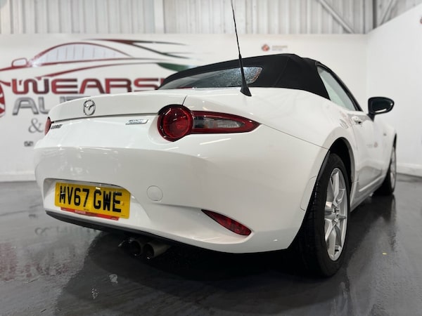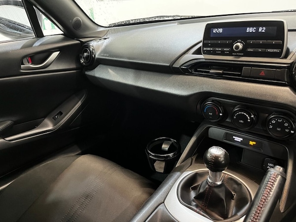 Mazda MX-5 1.5 SKYACTIV-G SE Convertible 2dr Petrol Manual Euro 6 (131 ps). This stylish and agile Mazda MX-5 comes with two keys and a recorded service history at 26,000 miles, reflecting careful ownership and regular maintenance. Powered by Mazdas responsive 1.5 SKYACTIV-G petrol engine producing 131 ps and paired with a manual gearbox, it delivers an engaging and efficient driving experience. The specification includes alloy wheels, electric door mirrors, keyless start, air conditioning, and a leather steering wheel. A classic open-top roadster with excellent handling and low running costs, ideal for drivers who enjoy pure driving pleasure. All vehicles are delivered serviced, with a full 12 months clean (NO ADVISORIES) MOT. All vehicles also come with free complimentary 12 months breakdown cover. All vehicles are supplied with a FREE 6 months warranty. An upgraded, extended 12 month warranty at reasonable additional cost is also available. P/X welcome. Please check our website for our up to date stock of over 400 cars and vans, an excellent selection is always available..alloy wheels , electric door mirrors , keyless start , air conditioning , leather steering wheel , 16in Alloy Wheels - Silver, Air Conditioning - Manual, Air Conditioning Dials - Black, Air Vent Surrounds - Black, Analogue Speedometer, Automatic Passenger Airbag Deactivation System, Auxiliary - AUX - and USB Input, Body Coloured Door Mirrors, Chrome Meter Rings, Coinbox, Convertible Top - Premium Cloth Soft Top with Heated Rear Window - Manually Operated, Cupholder - Front, DHS - Deployable Hood System, Double Pinion Electric Power Assisted Steering - DP-EPAS, Driver and Passenger Front Airbags, Dual Exhaust System, Dynamic Stability Control - DSC - with Traction Control System - TCS, Electric Windows - One Touch Auto Down, Electrically Adjustable-Heated Door Mirrors, Emergency Tyre Repair Kit, Engine Start-Stop Button, Fashion Bar Cladding, Four-Wheel Anti-Lock Braking System - 4W-ABS with Electronic Brake-Force Distribution - EBD, Fuel Filler Lid - Body Colour, Gear Knob - Leather with Chrome Surround, Gear Shift Indicator, Halogen Daytime Running Lights, Handbrake - Leather Wrapped, Headlights - Coming-Leaving Home, Headlights - LED with Auto Headlight Levelling, Hill Hold Assist, ISOFIX Child Seat Anchorage - Passenger Seat, Inner Door Handles - Satin Silver, Interior Courtesy Light, Multimedia System, Rear Brake Light - High Mounted, Remote Central Locking with Deadlocking and Remote Boot Release, SKYACTIV-Body Engineered Triple H Body Structure to Help Protect Occupants from Impact Forces, SRS - Supplementary Restraint System, Seatbelts - 3 Point - ELR - 2x with Pre-Tensioners, Seatbelts - Reminder Screen with Audible Warning, Seats - Drivers Manual Slide-Recline and Tilt Adjustment, Seats - Front Passenger Manual Slide and Recline Adjustment, Side Airbags, Steering Wheel - Leather with Chrome Bezel, Steering Wheel - Mounted Audio Controls, Steering Wheel - Tilt Adjustment, Storage - Rear Centre Box with Lockable Lid, Sunvisors - Drivers and Passengers with Covered Vanity Mirror-Ticket Holder, Thatcham Category 1 Alarm and Immobiliser, Trip Computer, Tyre Pressure Monitoring System, USB - iPod Connectivity, Upper Door Trim - Black, Windblocker, Wipers - Front Adjustable Speed with Intermittent