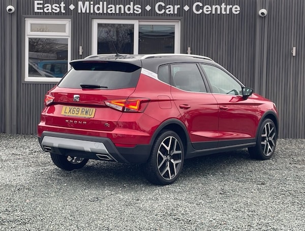 This 2019 SEAT Arona TSI FR Sport is a superb example, having been owned by just one careful keeper from new and boasting a clear vehicle history check. This stylish compact SUV features a responsive 1.0 litre petrol engine, meeting Euro 6 emissions standards. The FR Sport trim enhances its appeal with a sporty design and a host of practical features. Youll appreciate the convenience of Full LED Headlights, Bluetooth audio streaming with a handsfree system, and a Winter Pack that includes heated seats for those colder days. Parking is made easier with rear parking sensors, and the Full Link Smartphone Integration, compatible with Android Auto and Apple CarPlay, keeps you connected on the go. This particular Arona stands out with an impressive fuel economy of 48 miles per gallon, indicating its efficiency compared to other vehicles in its class. Furthermore, its low CO2 emissions contribute to a more environmentally conscious drive. These highlights, combined with its single owner provenance and desirable FR Sport specification, make this SEAT Arona a compelling choice for anyone seeking a well maintained and feature rich compact SUV. East Midlands Car Centre is A family business you can trust. We have built our reputation based on the quality of cars we supply and the outstanding customer service we deliver. Here at East Midlands Car Centre We are extremely passionate about what we do, we endeavour to ensure all our customers have a warm family friendly experience whilst choosing the right vehicle and receiving great value for money. HPI clear. Part exchange welcome. Open late by appointment. Extended warranties available up to three years. Finance Available NO deposit required. All vehicles inspected and serviced by Lutterworth Ford. Any further information or viewing please contact us on or Nationwide home delivery service available. All specification data above provided by third party source, we accept no liability for errors in this advert, please call the sales team to confirm any of the details above. .18in Alloy Wheels - Performance, Active Front Head Restraints, Alarm with Back-Up Horn, Anti-Lock Braking System - ABS, Auto Dimming Rear View Mirror, Auto-Headlights, Automatic Warning Lights, Black Interior Roof, Bluetooth Audio Streaming with Handsfree System, Chrome Window Trim, Coming Home - Leaving Home Headlight Function, Connectivity Pack Plus, Contrast Roof, Cruise Control, DAB - Digital Radio, Dark Tinted Rear Windows, Digital Clock, Digital Cockpit, Double Boot Floor, Driver and Front Passenger Airbags, Driver Sunvisor with Mirror and Card Holder, Dual Zone Climate Control, Dust and Pollen Filter, Electrically Adjustable Folding and Heated Door Mirrors, Electro-Mechanical Power Steering - Speed-Sensitive, Electronic Engine Immobiliser, Emergency Tyre Repair Kit, ESC - Electronic Stability Control with EBA - Emergency Brake Assist, Exhaust Pipe - Twin, FM-AM Radio, Front and Rear Electric Windows, Front and Rear Seatbelt Reminder, Front Assist, Front Courtesy Light with Front Reading Lights, Front Grille Frame in Chrome, Front Passenger Airbag De-Activation, Front Side and Curtain Airbags, Full LED Headlights, Full Link Smartphone Integration, Gearshift Indicator, Height Adjustable Drivers Seat, Height Adjustable Front Passenger Seat, Height and Reach Adjustable Steering Wheel, Hill Hold Control, Instrument Lighting with Brightness Control, Interior Ambient Light, Interior Chrome Pack, Interior Footwell Light, ISOFIX Points in Outer Rear Seats with Top Tether Anchorage Points, Leather Handbrake, Leatherette Dashboard, LED Daytime Running Lights, LED Licence Plate Lighting, LED Taillights, Lights Left On Warning Buzzer, Locking Wheel Bolts, Low Fuel Warning Light, Multi-Collision Braking System, Multicoloured Ambient Lighting, Outside Temperature Gauge, Passenger Sunvisor with Mirror, Perforated Leather Flat-Bottomed Steering Wheel with Red Stitching and FR Logo with Leather Gear Knob, Rain Sensing Wipers, Rear Parking Sensors, Roof Coloured Door Mirrors, Roof Rails - Chrome, RPM Counter, SEAT Drive Profile, Seats - Sports FR, Six Speakers, Split Folding Rear Seats - 60-40, Sports Suspension, Three-Point Seatbelts on All Rear Seats, Tiredness Recognition System, Trip Computer, Two Front and Three Rear Height-Adjustable Headrests, Tyre Pressure Monitoring System, Winter Pack