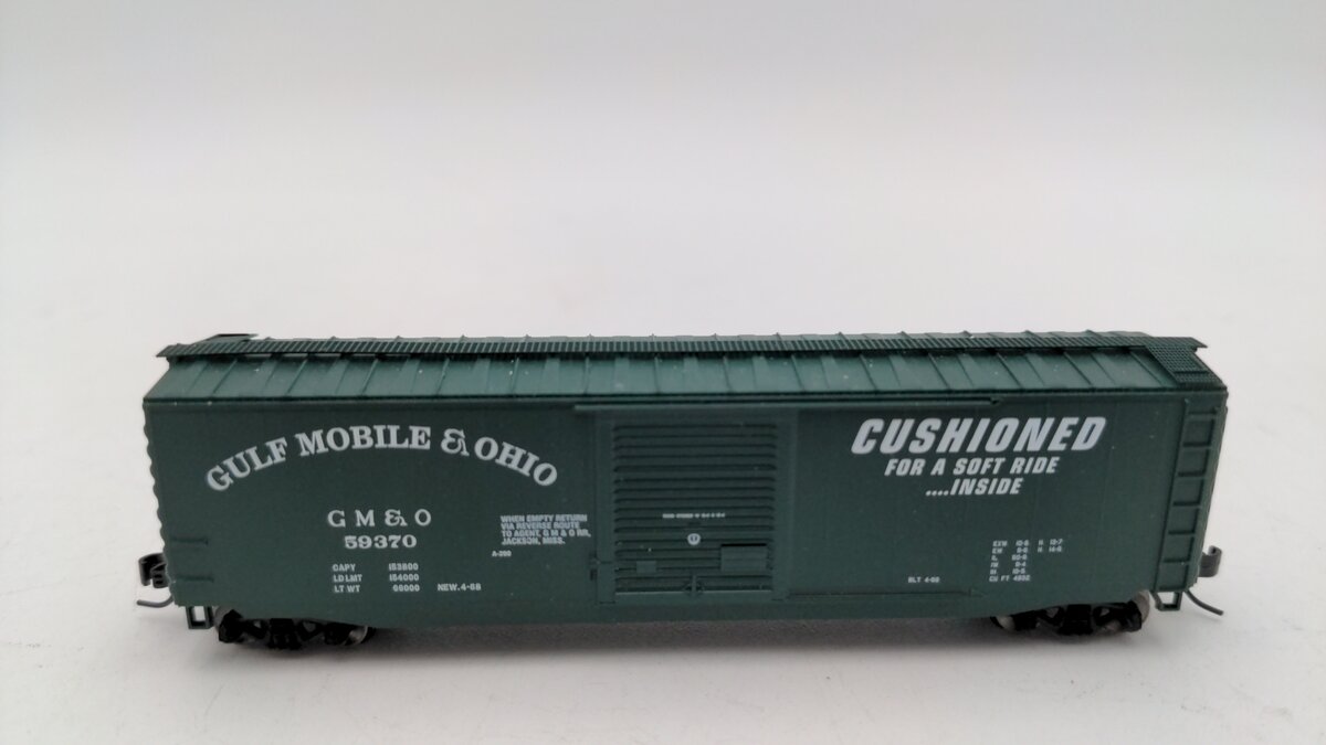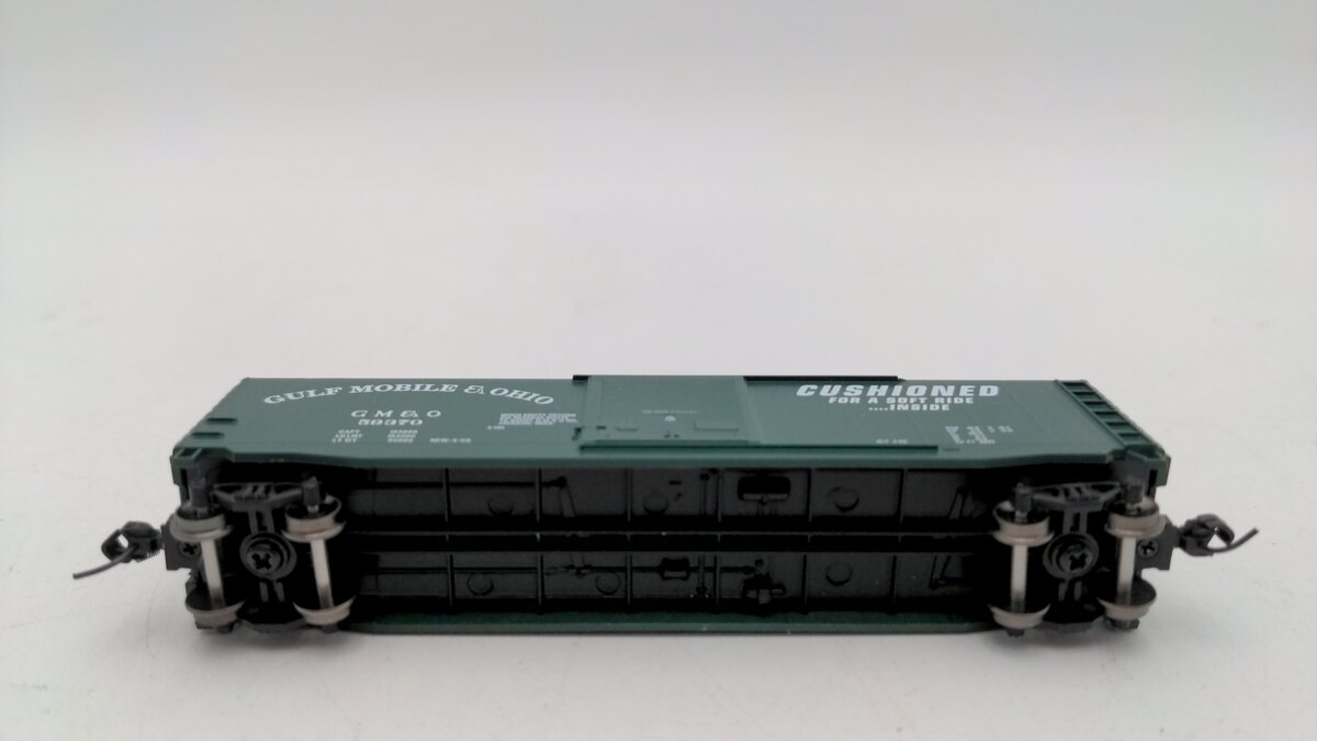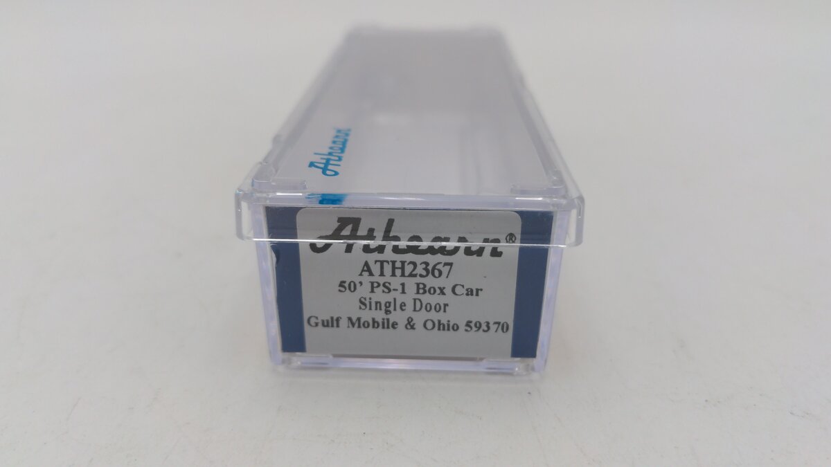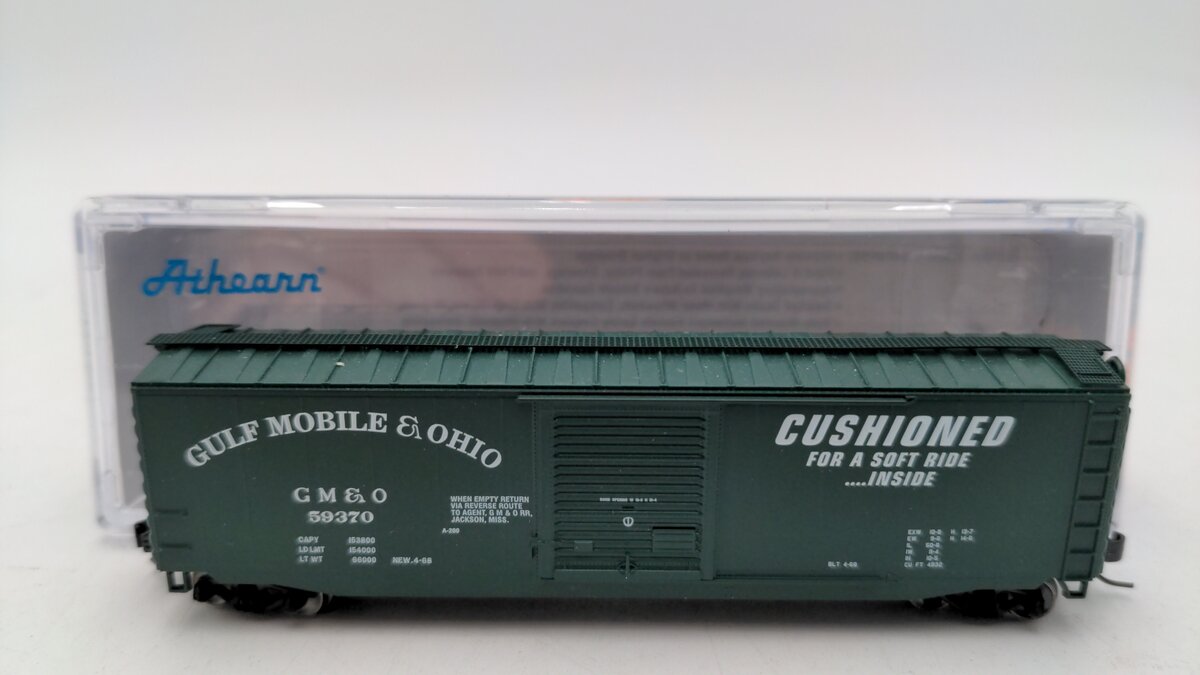 Here we have a Athearn 2367 N Scale Gulf, Mobile & Ohio Box Car #59370. This item features a plastic body construction as well as metal wheels and knuckle couplers.