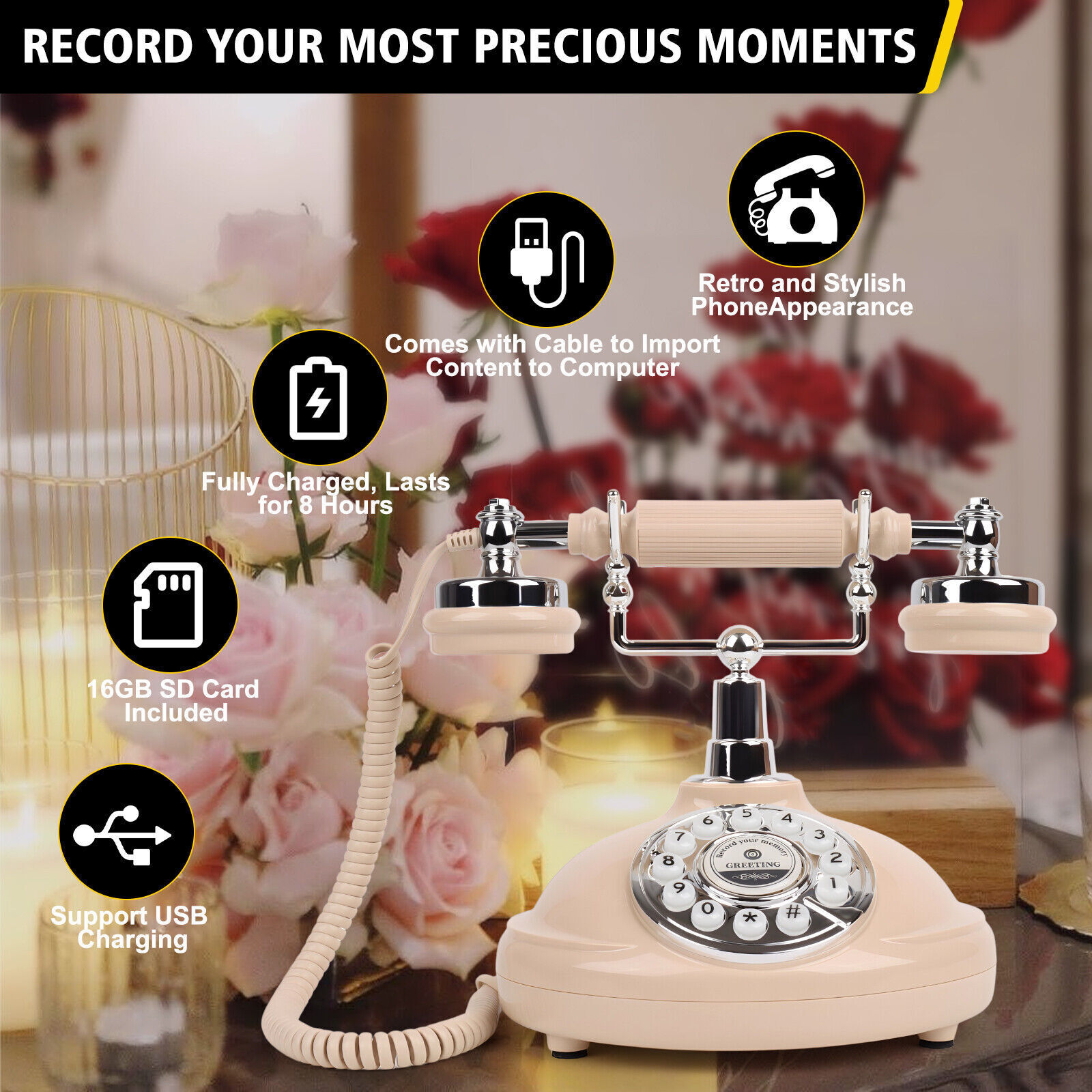 ☎【Easy to Use】Simply turn the dial hook down until you hear a beep to start recording your greeting. Recordings are saved on the included 8GB micro SD card, which you can sync with your phone or computer for storage and playback. You can use it yourself or give it as a valuable gift to your family or friends.