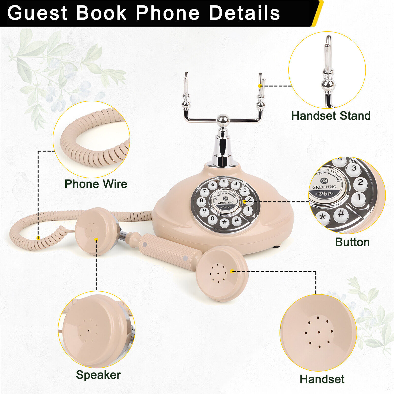 ☎【Exquisite Appearance】It has a unique vintage telephone design. Break away from the traditional paper guestbook and use this novel design instead. It can be used as both a decorative accessory and at any party. Our audio guestbook comes in various colors, so there's always one that suits your preference. Its beautiful and classic design can add charm to any occasion.