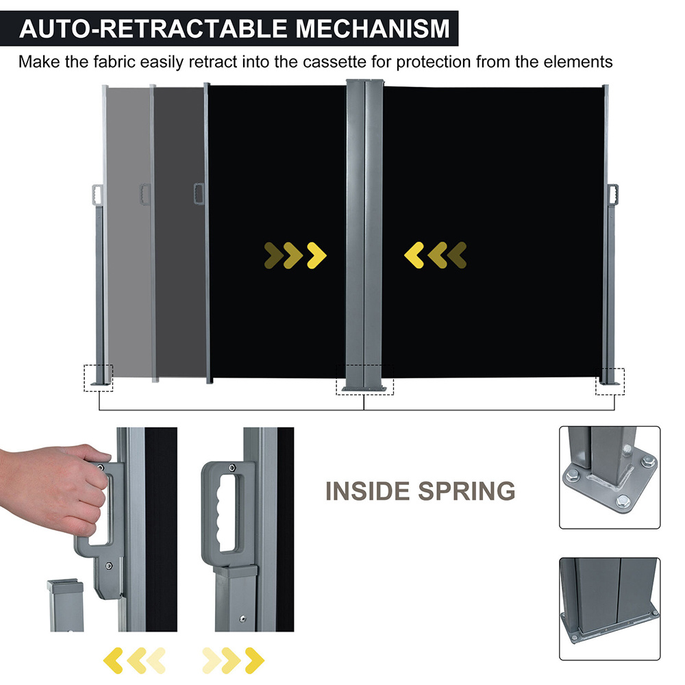 * Retractable Privacy Screen: The side awning screen fence is easy to open and close by handle,