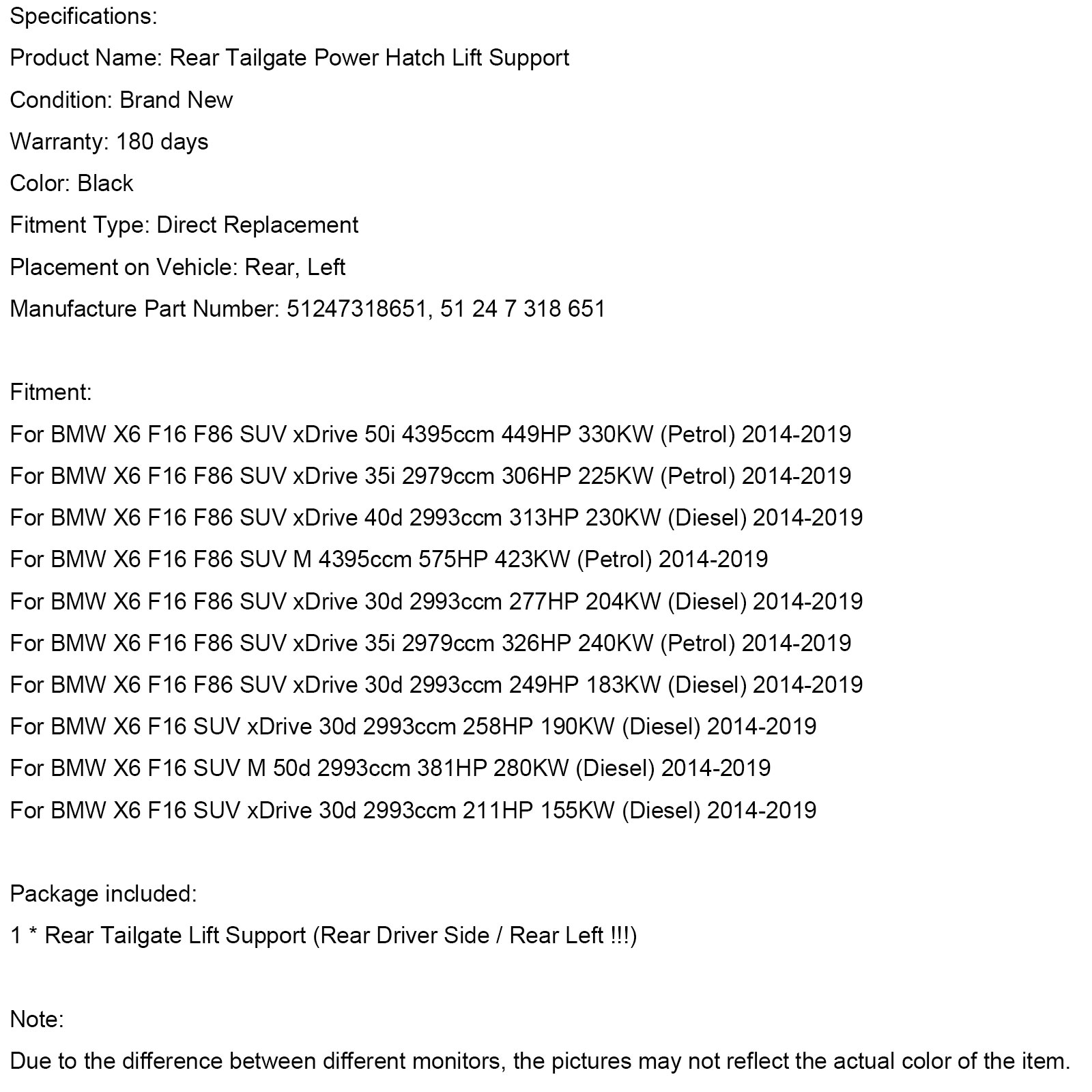 For BMW X6 F16 F86 SUV xDrive 50i 4395ccm 449HP 330KW (Petrol) 2014-2019