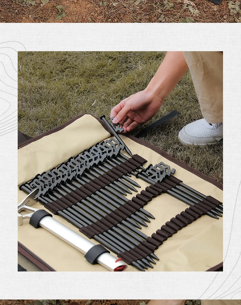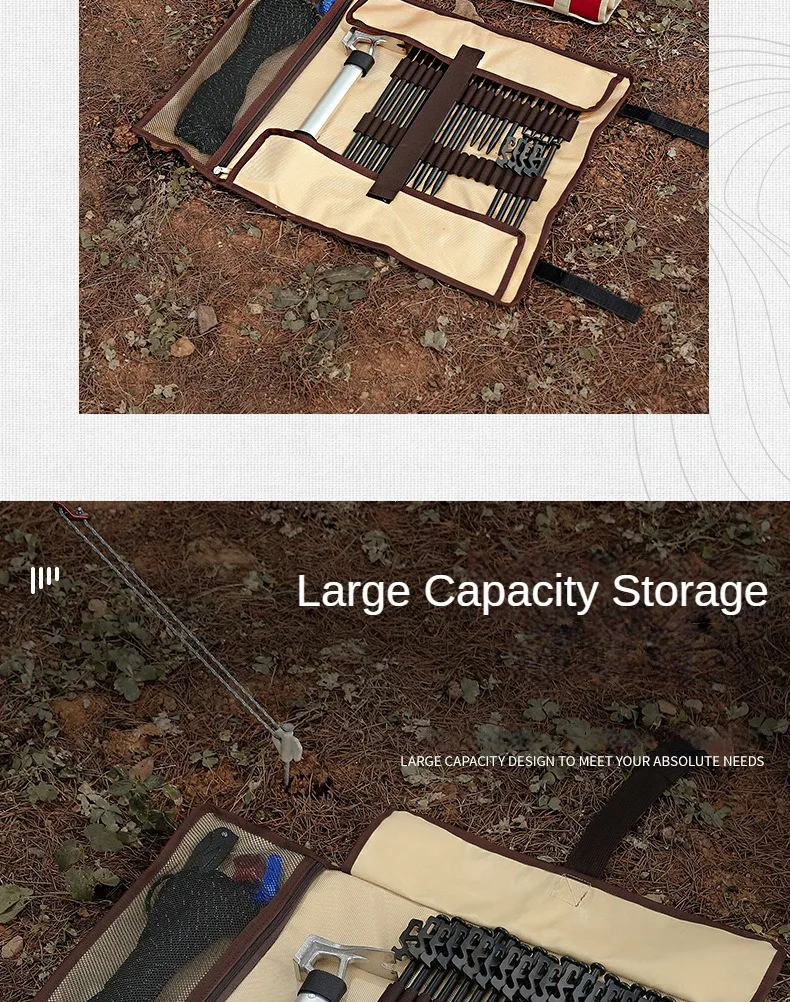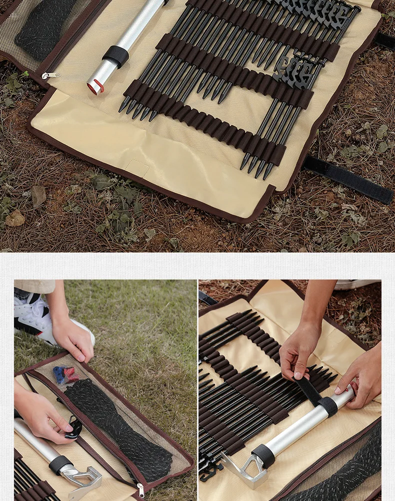MULTIFUNCTIONAL: The storage bags keep your outdoor supplies in order: the storage bag can store 20 tent stakes and a hammer, as well as various guy lines and other outdoor supplies.