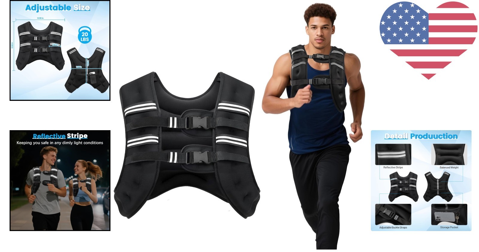 Unisex Durable Weight Vest with Reflective Stripes