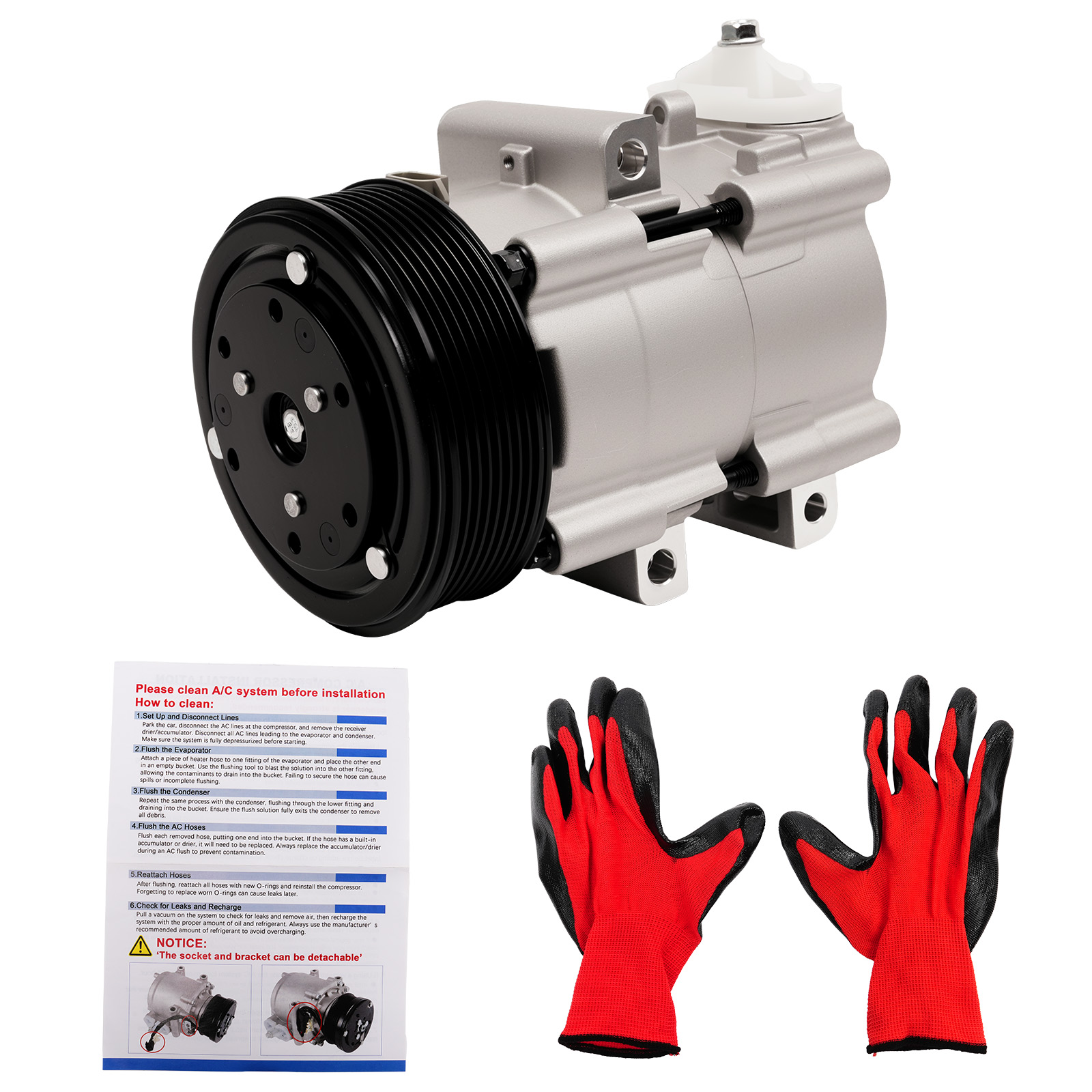 Specifications: Manufacturer Warranty : 1 Year Kit Parts Included : Cluth Surface Finish : Painted Fitment Type : Direct Replacement Compressor Type: FS10 OE NUMBER: Fitment: 1999-2001 Ford F150 4.6L 5.4L A/C Compressor With Clutch Assembly 1999-2001 Ford F250 4.6L 5.4L A/C Compressor With Clutch Assembly 1999-2001 Ford F250 SD 5.4L 6.8L A/C Compressor With Clutch Assembly 2003-2007 Ford F250 SD 6.0L A/C Compressor With Clutch Assembly 1999-2001 Ford F350 SD 5.4L 6.8l A/C Compressor With Clutch Assembly 2003-2007 Ford F350 SD 6.0L A/C Compressor With Clutch Assembly 1999-2001 Ford F450 SD 6.8L A/C Compressor With Clutch Assembly 2003-2007 Ford F450 SD 6.0L A/C Compressor With Clutch Assembly 1999-2001 Ford F550 SD 6.8L A/C Compressor With Clutch Assembly 2003-2007 Ford F550 SD 6.0L A/C Compressor With Clutch Assembly 1997-2002 Ford Lobo 4.6L 5.4L A/C Compressor With Clutch Assembly 2003-2005 Ford Excursion 6.0L A/C Compressor With Clutch Assembly Package Included: 1 x AC Compressor w/Clutch Features: 1. Built to strict quality control standards 100% factory tested 2. Easy Installation,100% Compatible with OEM Parts, meets Original Equipment Manufacturer (OEM) Standards 3. Mechanically tested prior to leaving the factory ensures optimal performance and enhanced durability. 4. Perfect match for the original car. 5. Protection against vibration and light side forces. 6. Great life cycles. 7. Guaranteed Exact Fit for easy installation. Attention: 1. Please confirm compatibility before purchasing to ensure correct fitment. 2. Please ensure the installation site is clean otherwise it will lead to the high temperature of the compressor and the melt of the clutch. 3. Noise, vibration, durability, vacuum decay, and pressure decay need to be tested to ensure no leaks and keep longer life of the compressor. 4. It is strongly recommended to conduct professional maintenance and installation.