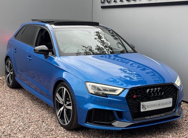 SUTTONCAR SALES ARE PROUD TO BRING TO MARKET THIS STUNNING AUDI RS3 SPORT EDITION FINISHED IN ARGUABLY THE BEST COLOUR ARA BLUE CRYSTAL EFFECT PAINTWOK WITH JUST 27,000 MILES FROM NEW. THIS RS3 HAS HAD SOME EXTENSIVE ENGINE MODS CARRIED OUT BY RENOUND AUDI SPECIASIST MRC.MODIFICATIONS INCLUDE:- MRC STAGE 2 ENGINE TUNE RUNNING 530 BHP- MRC STAGE2 TCU TUNE- MILLTEK DOWNPIPES (SOUNDS AWESOME)FACTORY OPTIONS INCLUDE:- PANORAMIC SUNROOF- AUDI SUPER SPORTS SEATS WITH RED STITCHING- COMFORT & SOUND PACK- CARBON INLAYS- BANG & OLUFSEN SURROUND SOUND- KEYLESS ENTRY START & GO WITH PUSH BUTTON START- REVERSE CAMERA- CRUISE CONTROL- 19'' ALLOY WHEELS WRAPPED IN MICHELLIN PILOT SPORT 4S TYRES- TOP SPEED INCREASE TO 174 MPHTHIS AUDI RS3 HAS BEEN FULLY MAINTAINED MAJORITY OF ITS LIFE AT AUDI WITH THE 2 RECENT SERVICES BEING CARRIED OUT AT MRC WHERE IT HAD A DSG AND HALDEX SERVICE.ALL OUR CARS COME WITH A PROFESSIONAL DETAIL, 12 MONTHS MOT AND 3 MONTHS WARRANTY WHICH CAN BE EXTENDED TO 6, 12, 24 OR 36 MONTHS FOR TOTAL PEACE OF MIND.WE ARE BASED IN SUTTON COLDFIELD (BASSETTS POLE), VIEWING STRICTLY APPOINTMENT ONLY, ALL MAJOR CREDIT/DEBIT CARDS ACCEPTED, PART EXCHANGE WELCOME AT TRADE VALUE, DEPOSITS TAKEN OVER THE PHONE, SECURE ANY OF OUR VEHICLES WITH A SMALL DEPOSIT OF £500, NATIONWIDE DELIVERY AVAILABLE