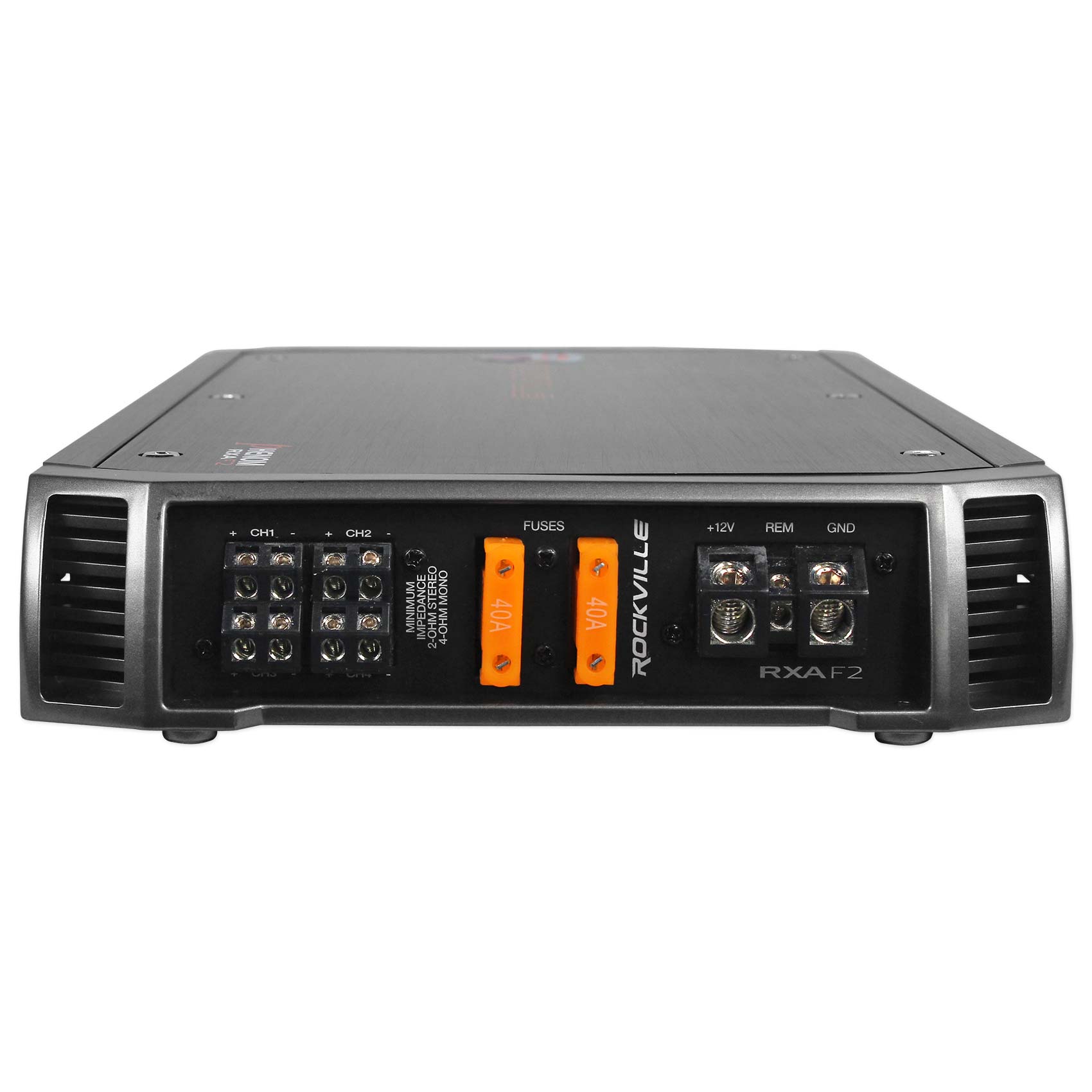 The RXA-F2 is a 4 channel amplifier with 2,400 Watts peak output and 600 Watts Dyno Certified RMS power. Here at Rockville we offer the best value in car audio. We therefore want to make it easy for you to compare our products to any brands on the market. The peak rating can be used to compare with brands who use peak ratings such as Boss and Power Acoustik while the Dyno Certified RMS rating can be used to compare with top brands such as Kicker, Rockford, Alpine, etc.