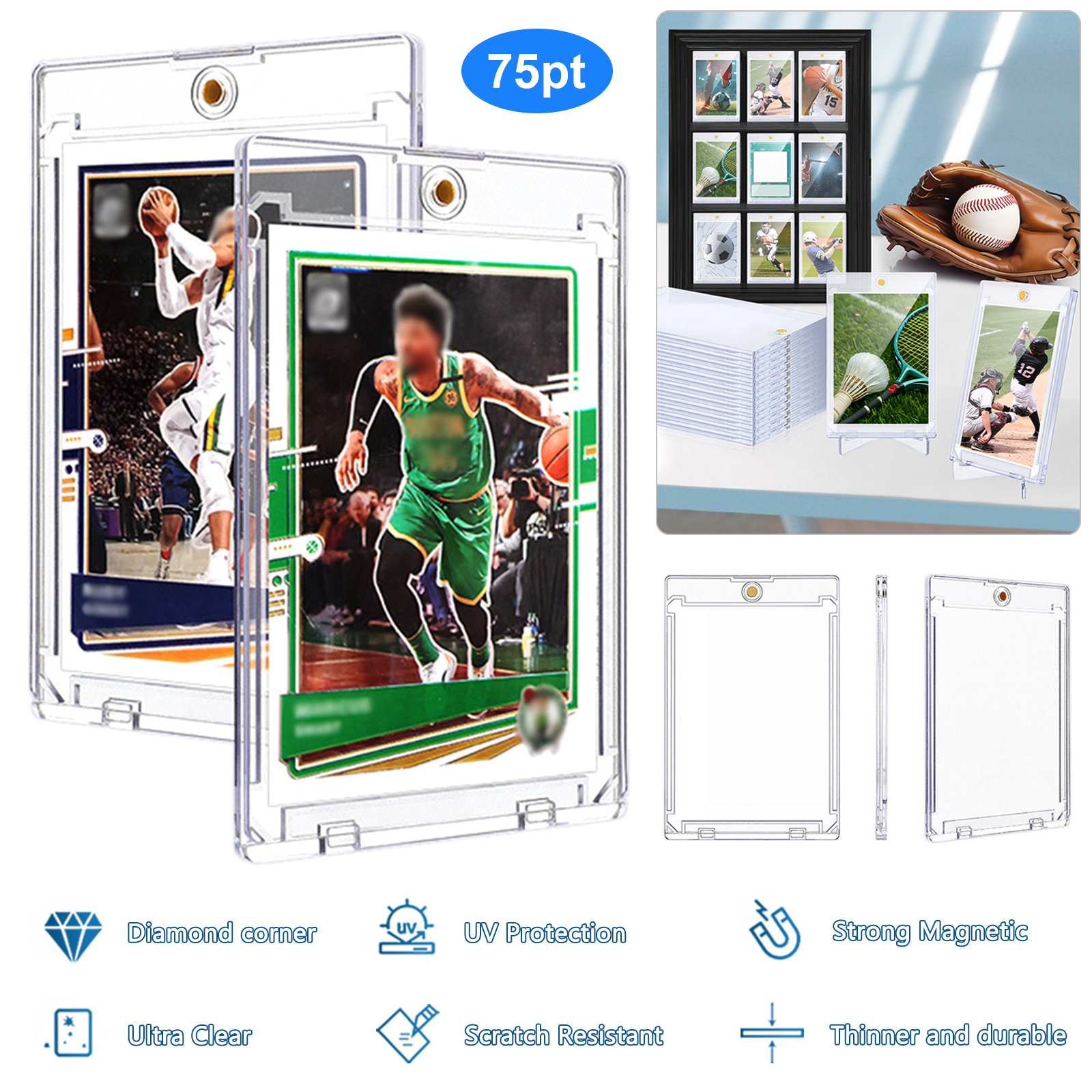 Standard Card Size: The Magnetic Card Holder fits the standard trading card size (2.5"x 3.5") up to 75PT point thickness. The trading card holder is suitable for baseball cards, basketball cards, football cards, hockey cards, and MORE.