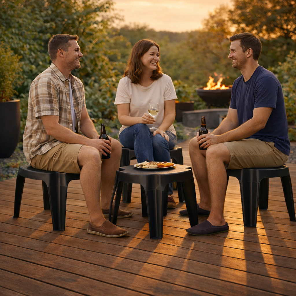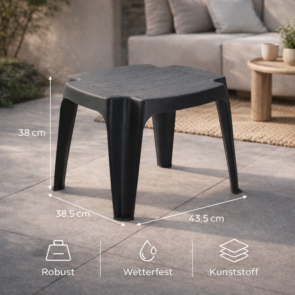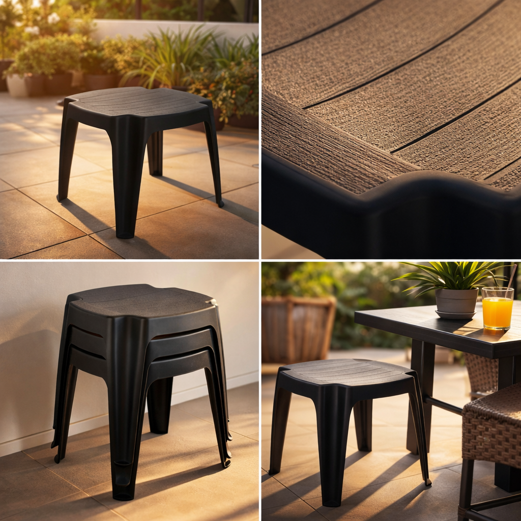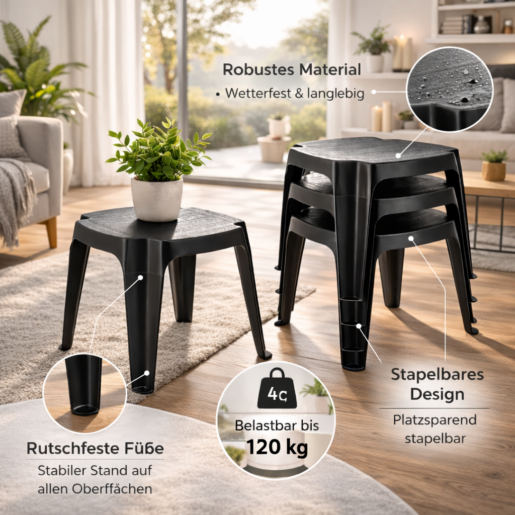 Gefertigt aus stabilem, pflegeleichtem Kunststoff ist der Hocker besonders langlebig und im Handumdrehen gereinigt. Bei Nichtgebrauch einfach stapeln und platzsparend verstauen.