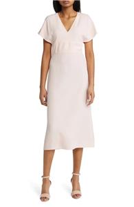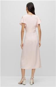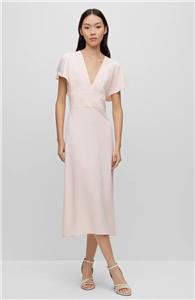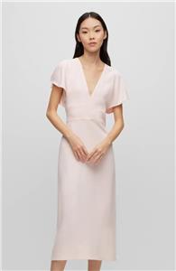 If between sizes, order one size down. Details & care A V-neck and fluttered sleeves bring modern charm to this A-line dress that's the perfect choice for your desk-to-dinner style. 48 1/2". V-neck. Short sleeves. Partially lined. Back zipper closure. 72% acetate, 28% viscose. Dry clean. Made in Turkey. Hugo Boss/BOSS/HUGO has received the Fair Labor Association accreditation, which signifies that the company has effective systems and procedures in place to successfully uphold fair labor standards throughout its supply chains, including strategies and tools to address and improve working conditions |