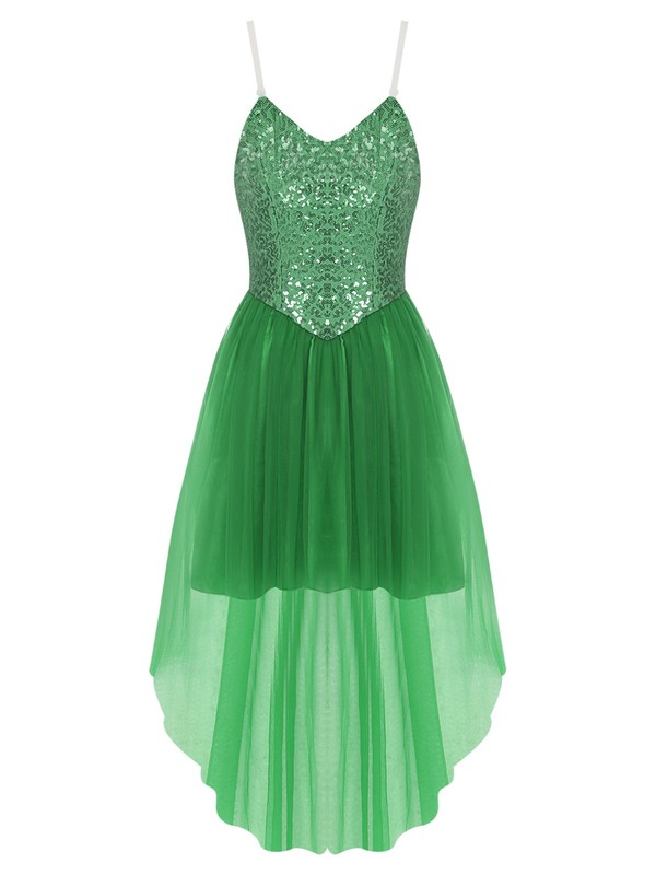 The high-low tulle hem design is a fashionable and flowing detail that gives a fairy-like, ethereal look.