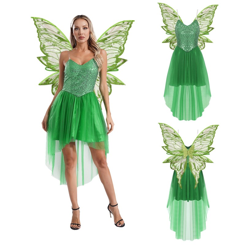 Set Include: 1Pc Dress, 1 Pair of Elf Wings