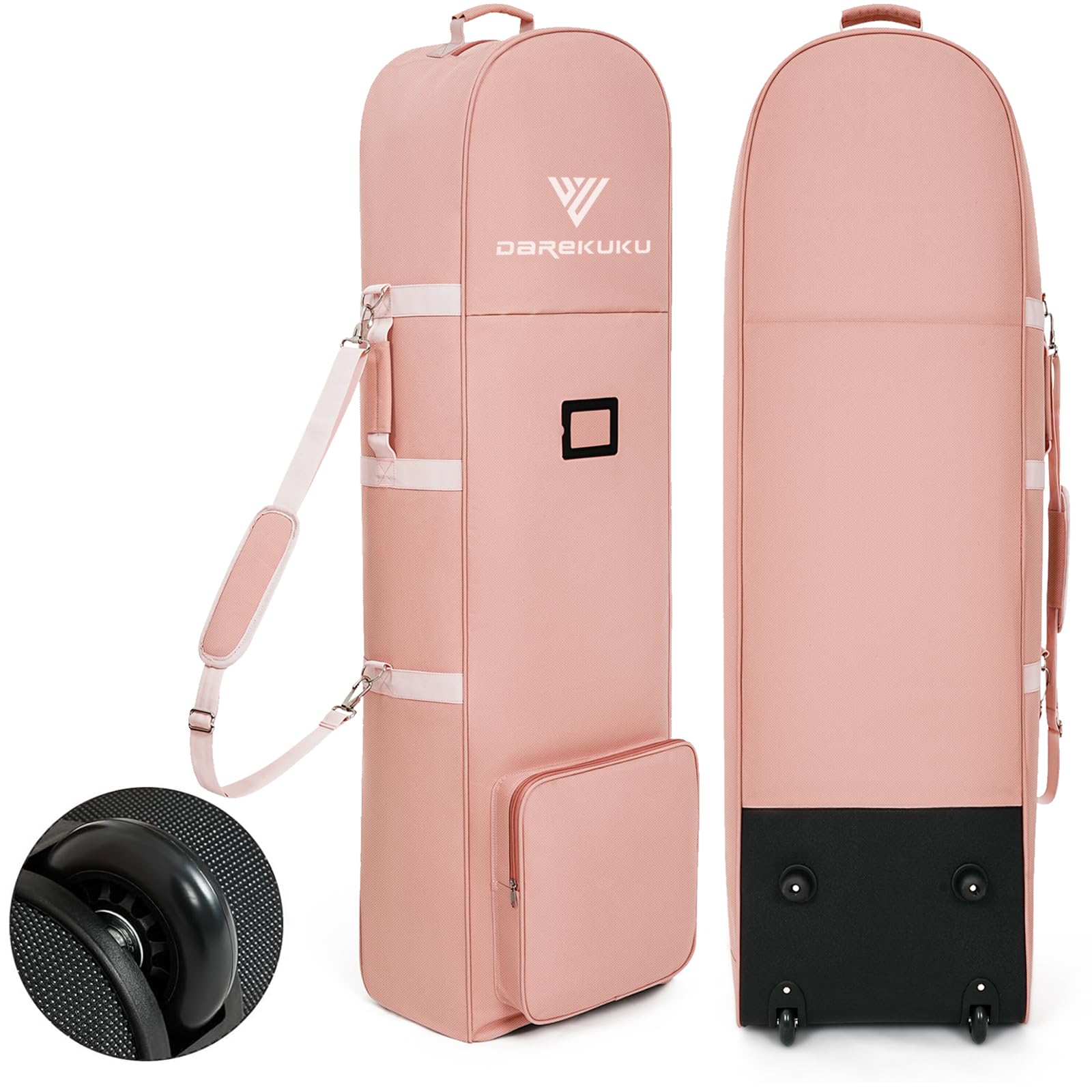 DAREKUKU Golf Travel Covers for Airlines with Detachable Shoulder Straps, Soft Foldable Golf Club Travel Bags, 900D Heavy Duty Oxford -Universal Size, Pink