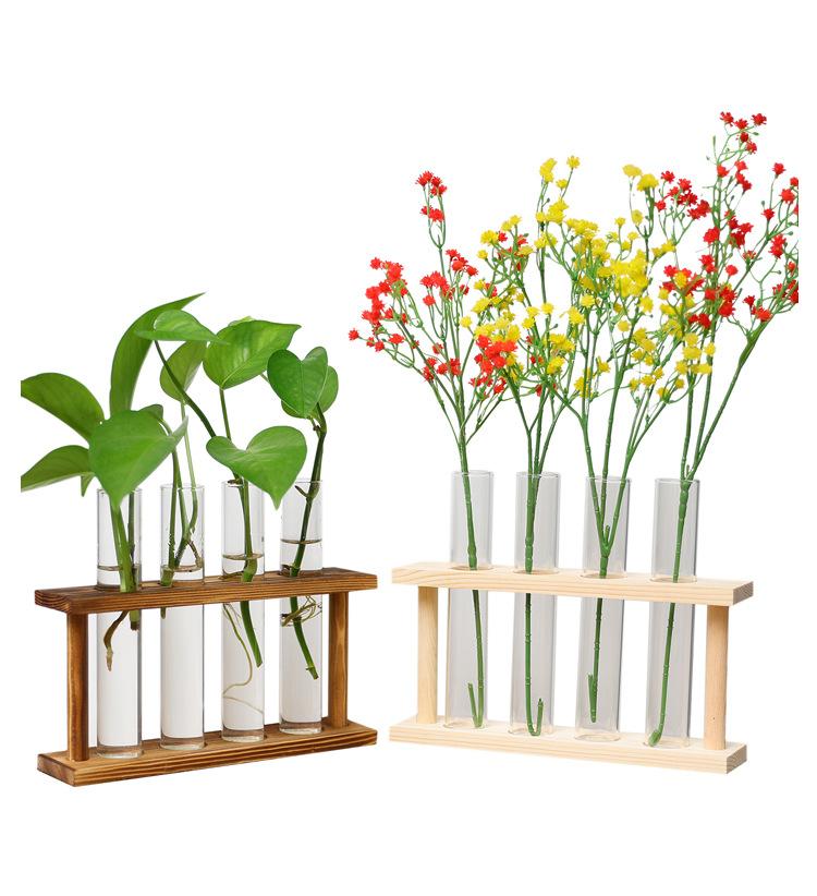 Minimalistic Look - A wood rack combined with 4 clear glass tubes. Unfinished wood surface that you can paint it as your unique design. Displays fresh flower, small plants for home decor in livingroom, bedroom, restroom, dinning room, kitchen, or office.