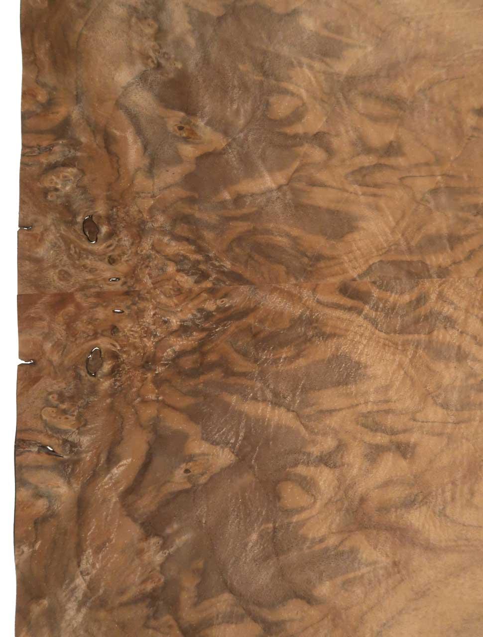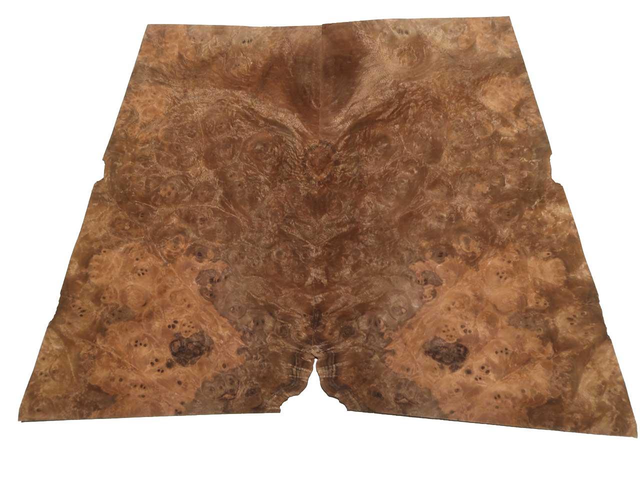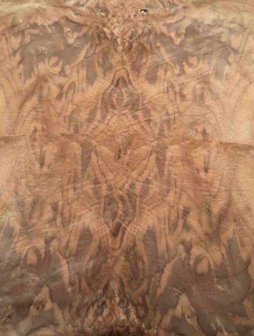 Questo è un maser di alberi da noce o Half Maser o Walnut - impiallacciatura della testa. In modo che questo tipo di legno possa essere ottenuto per la produzione di impiallacciatura, i tronchi non devono essere seguiti sopra la terra, ma devono essere scavati. Le faccette generate si traducono in un disegno particolarmente distintivo ed espressivo che guadagna la vita attraverso molte vertebre e combinazioni di colori. Si prega di notare che si tratta di un prodotto naturale e che con maser e legno di radice di questo tipo, possono verificarsi piccole crepe/crepe per capelli o luoghi aperti/incroci o onde (anche inaspettatamente) e puoi anche farlo Con qualche esperienza può elaborare! Questi non sono errori, ma sono tra le caratteristiche di questo legno di radice naturale. Si prega di considerare questo prima di acquistare!